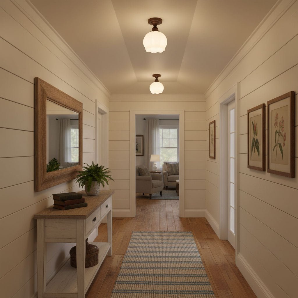 Hallway Lighting: Recessed or flush mount lights spaced evenly (every 8-10 feet) create a well-lit and inviting space.