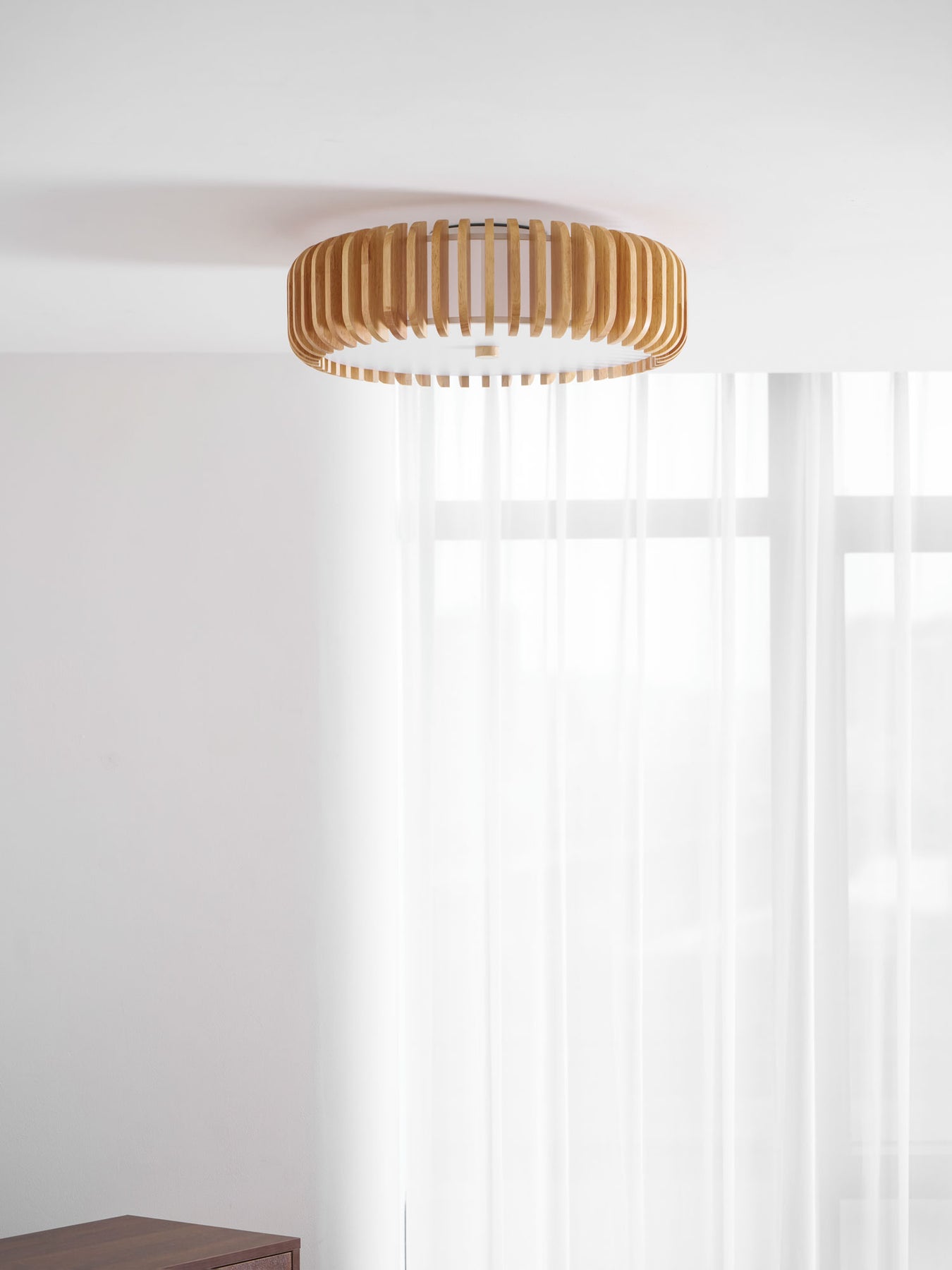 The Oakflare Ceiling Lamp by Vakkerlight embodies the perfect fusion of organic warmth and contemporary design. Crafted with precision, its wooden slatted frame casts mesmerizing light patterns, while the acrylic diffuser ensures a soft, ambient glow. Ideal for modern, Scandinavian, or nature-inspired interiors, this lamp creates an inviting and elegant atmosphere in any space.