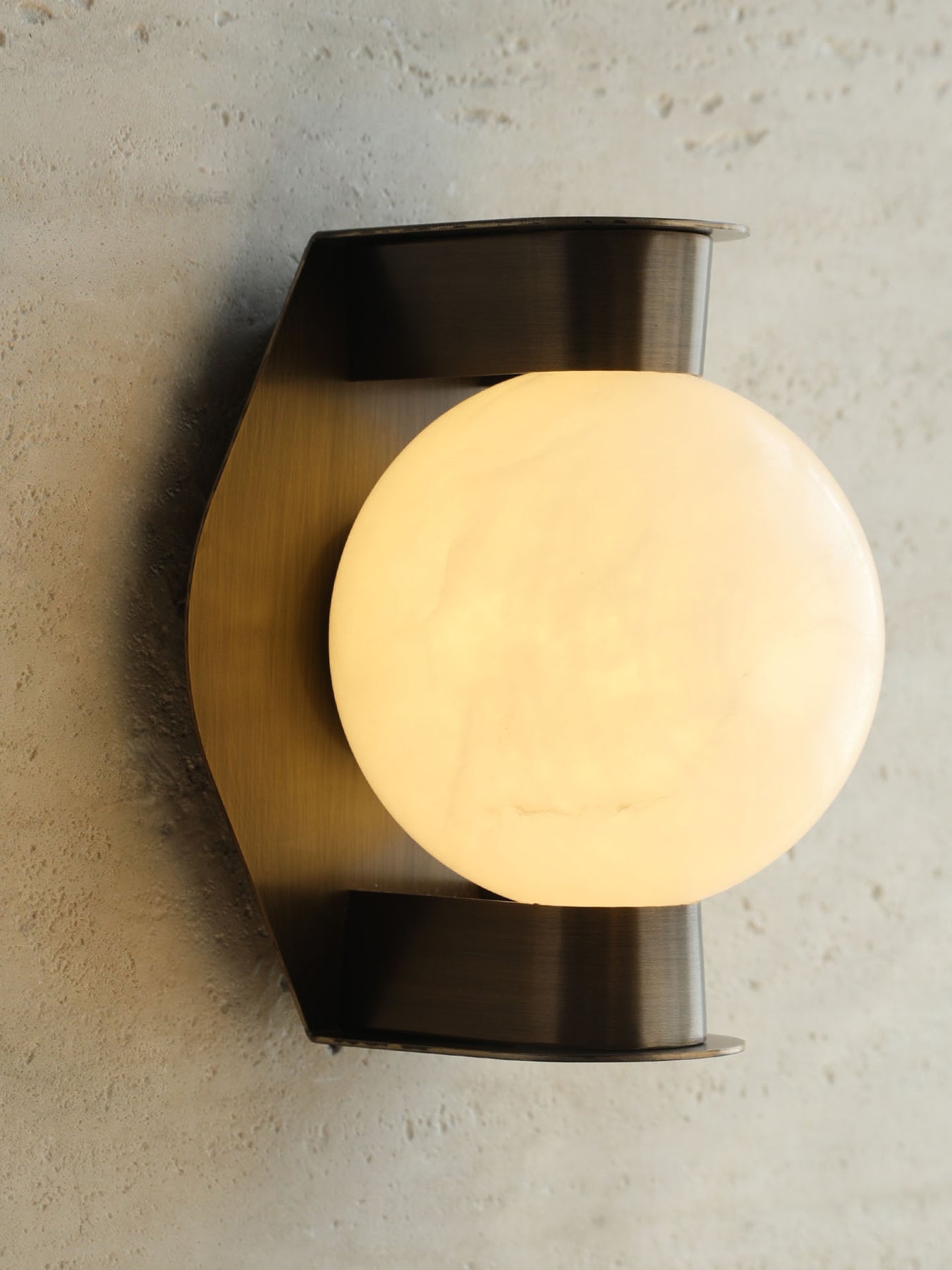 Discover the Vakkerlight Alabaster Orb Sconce – a fusion of timeless elegance and modern design. This exquisite wall light features a genuine alabaster sphere, celebrated for its unique natural veining and exceptional light diffusion, casting a warm, ambient glow. Expertly cradled by a sculptural aged brass frame, it offers a sophisticated architectural accent. Perfect for adding luxurious warmth to bedrooms, hallways, or living areas, this artisan-crafted sconce is a statement piece, blending natural beauty with refined craftsmanship. Elevate your interior with its soft luminescence and distinctive charm.