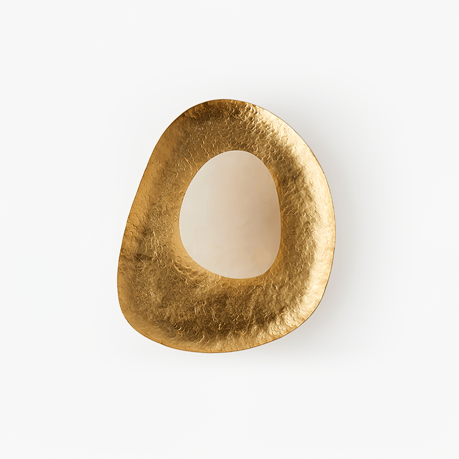 The Haloform Aurea Wall Lamp by Vakkerlight showcases a perfect balance of artistry and light. Crafted with a hand-hammered brass frame and a soft alabaster center, it radiates a warm, golden glow that enhances any space. Its fluid, asymmetrical shape adds a sculptural touch, making it an elegant focal point for living rooms, bedrooms, or hallways.
