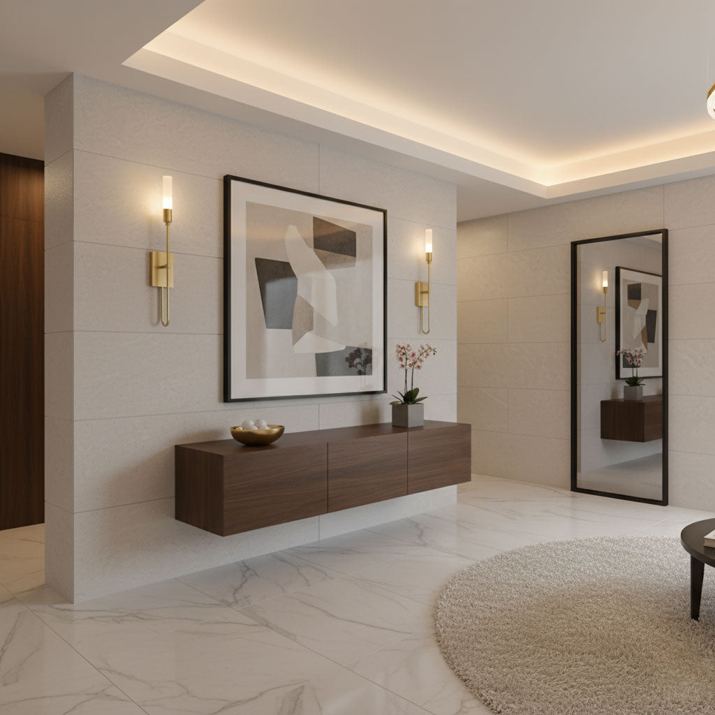 Hallway Lighting: Recessed or flush mount lights spaced evenly (every 8-10 feet) create a well-lit and inviting space.