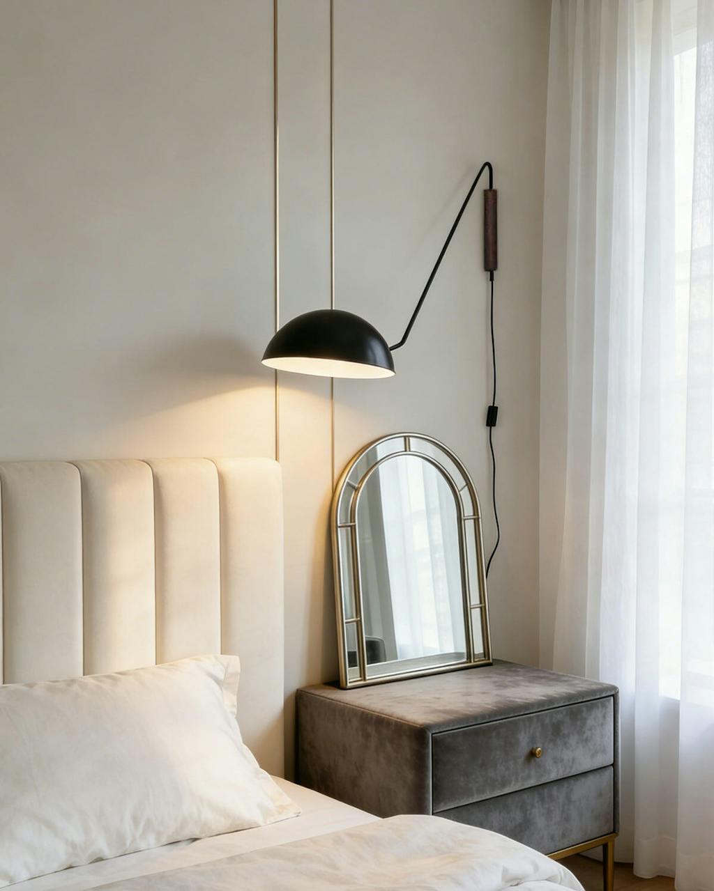 Ceiling Fixtures: Bedrooms benefit from soft, ambient lighting. Use the room dimension formula to ensure the ceiling fixture is properly scaled. Semi-flush or flush mounts work well for general lighting, while sconces or bedside lamps provide focused task lighting.