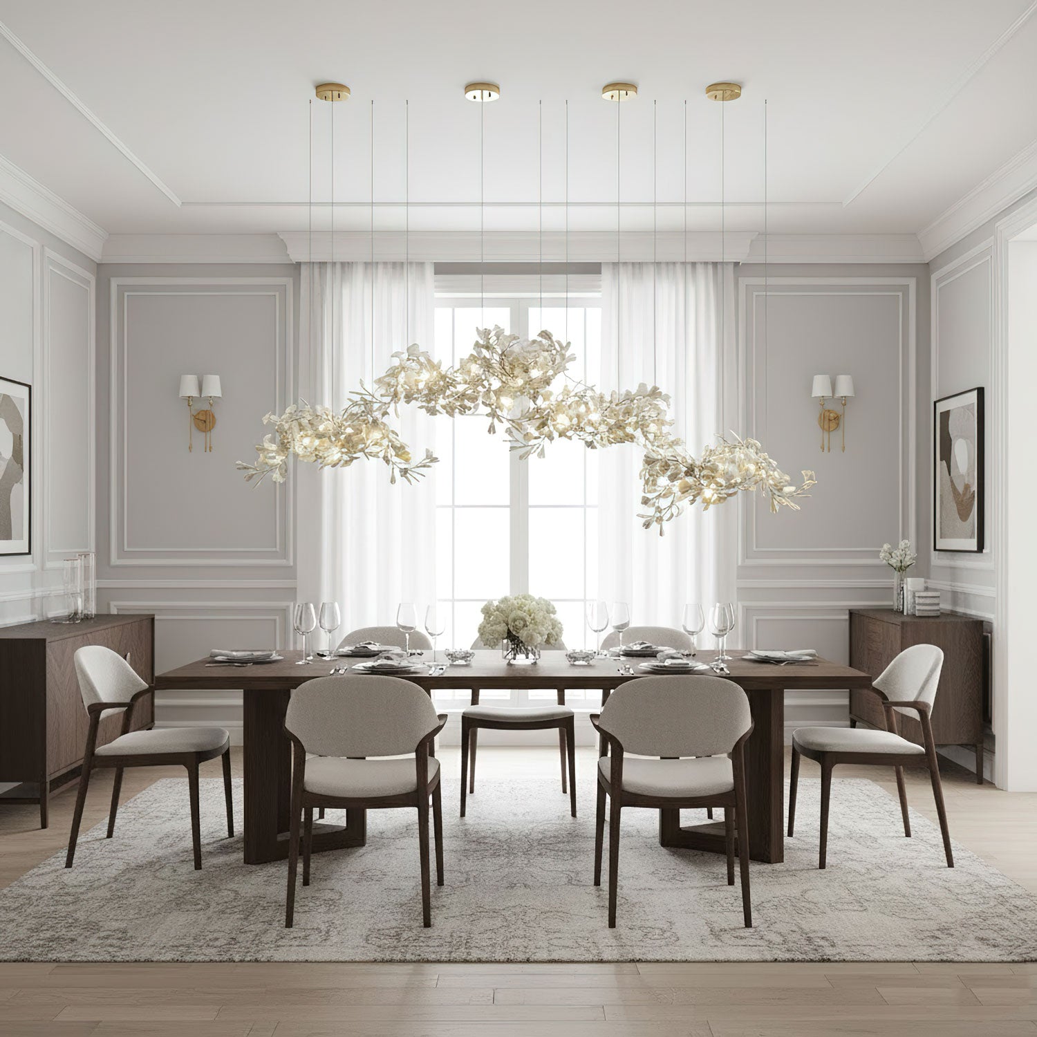 • Multiple Pendants: For long rectangular tables, two or three smaller pendants spaced evenly above the table create a balanced look.