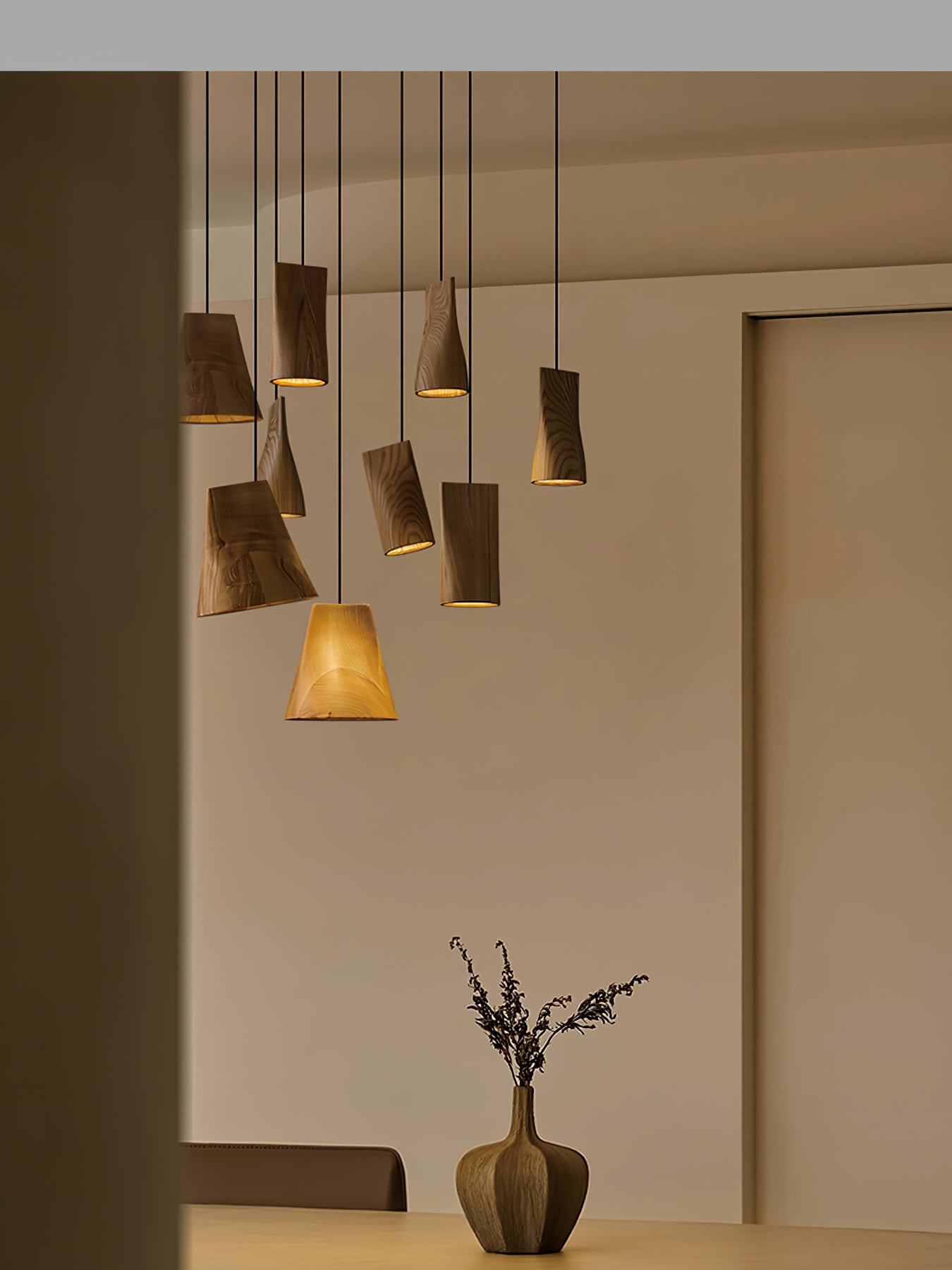 Minimal form meets organic warmth. The Nordic Tilted Wood Pendant Lights feature asymmetrically cut wooden shades, offering a playful twist on classic silhouettes. Crafted from natural wood with beautiful grain patterns, each pendant is unique — creating a trio that feels curated and effortlessly chic. Ideal for dining areas, kitchen islands, or cozy corners in need of texture and warmth.