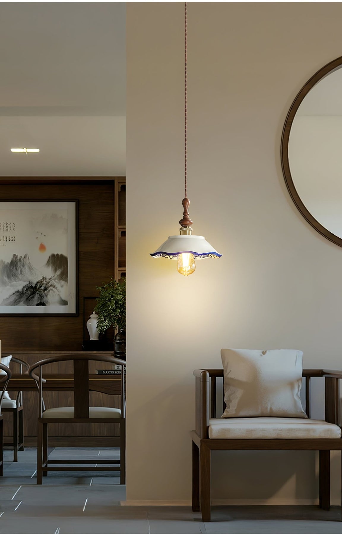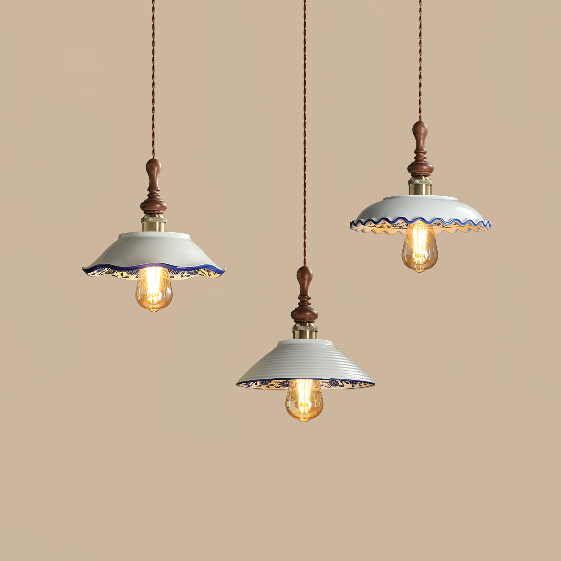 Delicate yet full of character, the Bellaria Pendant Lights by Vakkerlight blend artisanal charm with nostalgic elegance. Each piece is crafted with a ceramic shade adorned in hand-painted blue scalloped edges and fine detailing on the interior, adding subtle artistry to your ceiling space.