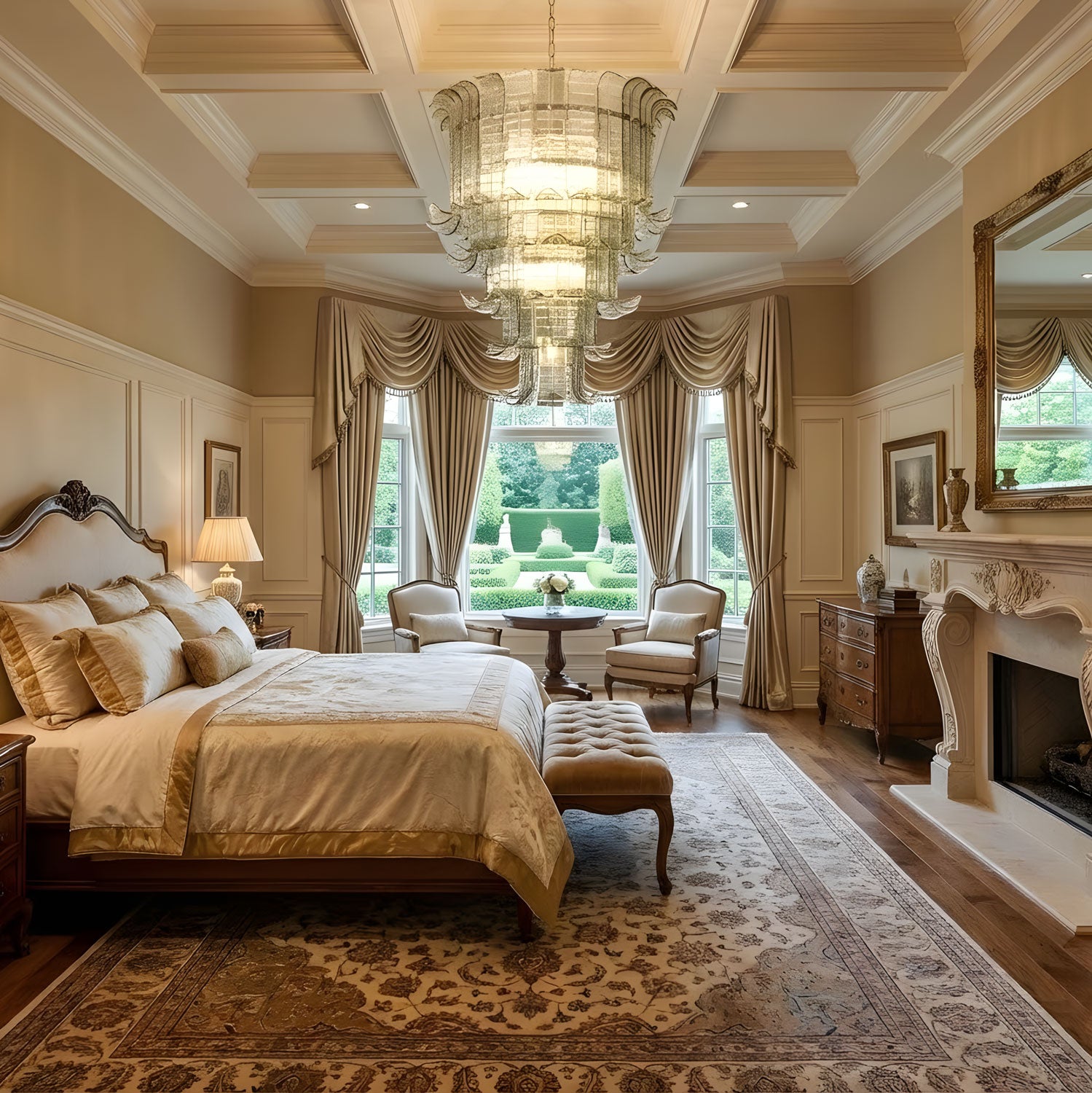 Ceiling Fixtures: Bedrooms benefit from soft, ambient lighting. Use the room dimension formula to ensure the ceiling fixture is properly scaled. Semi-flush or flush mounts work well for general lighting, while sconces or bedside lamps provide focused task lighting.