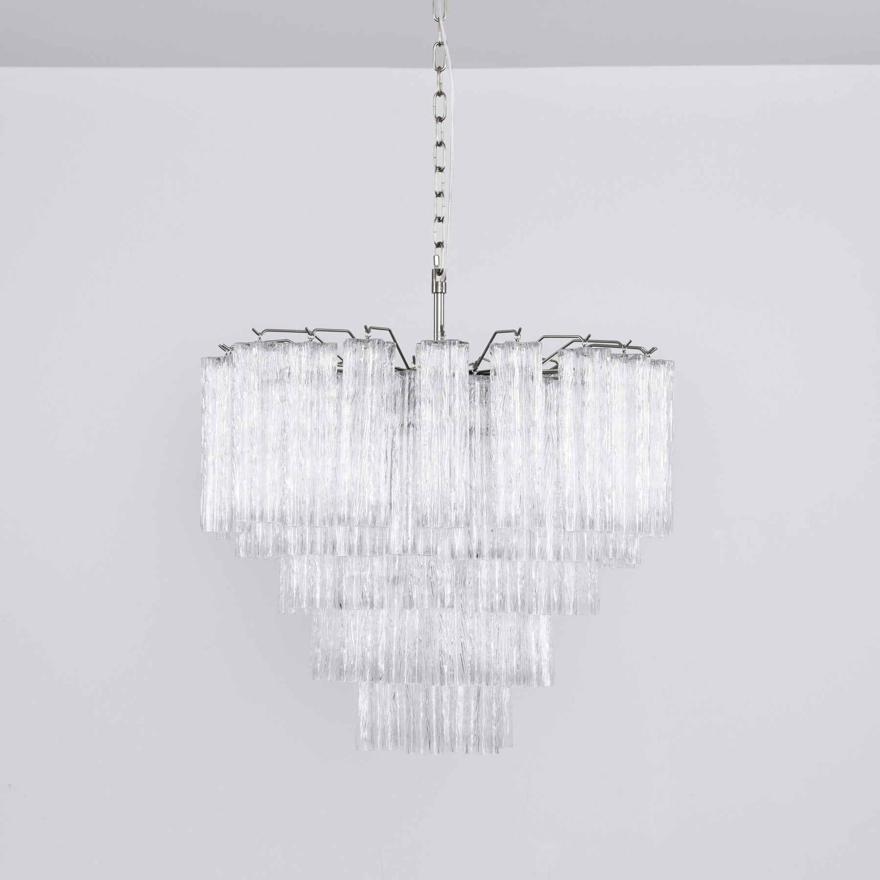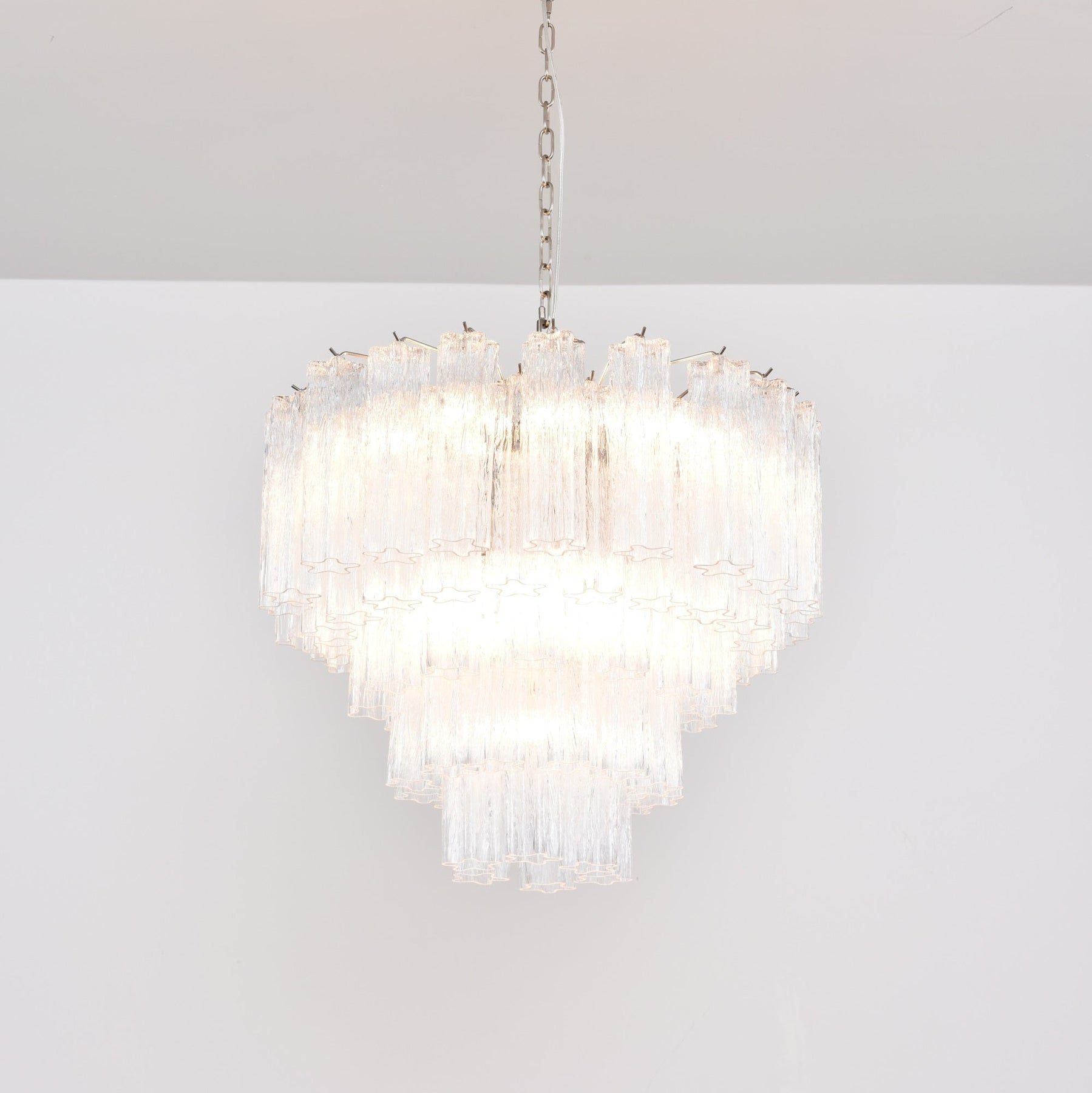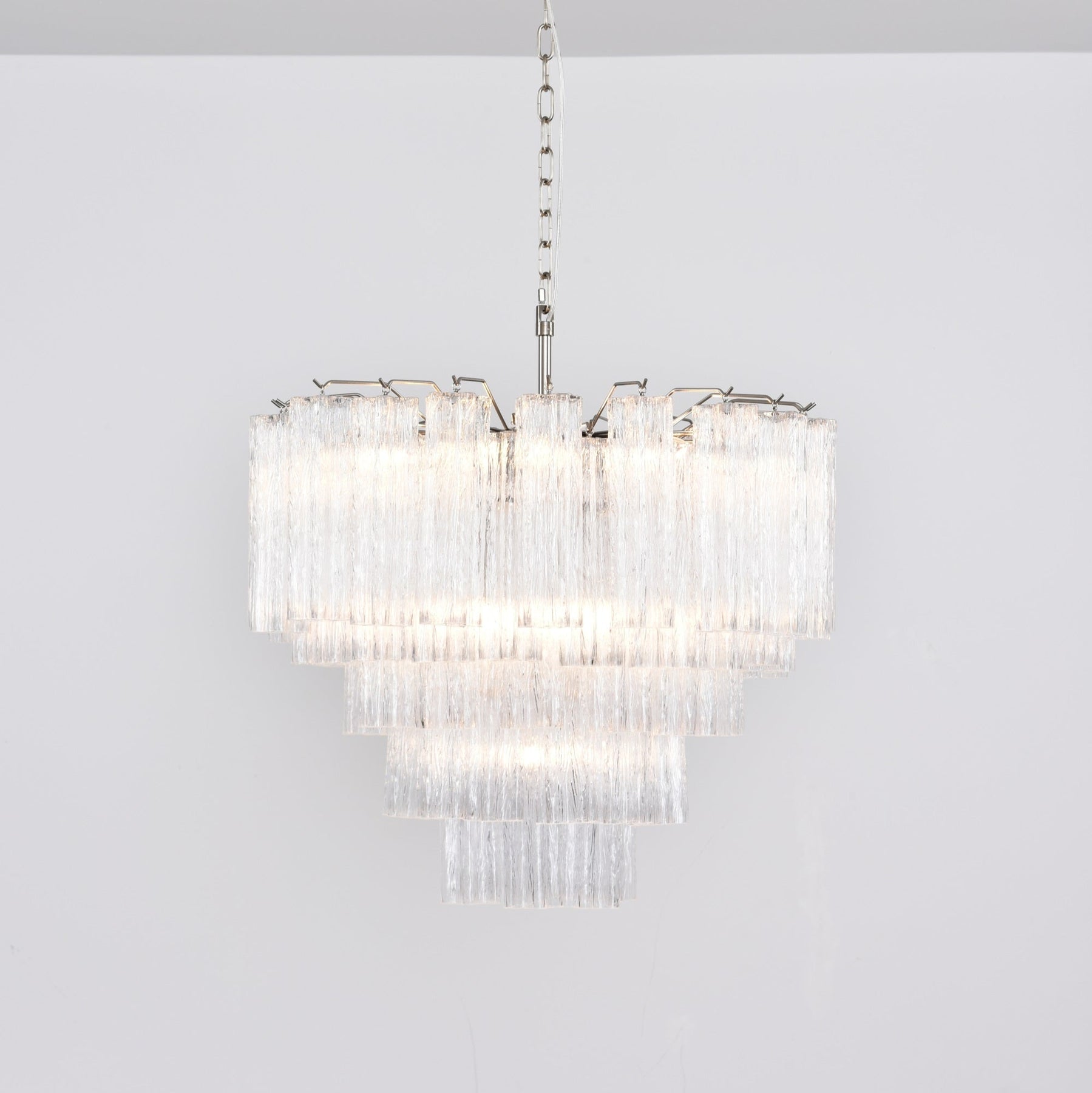 The Lucente Murano Chandelier is a celebration of refined craftsmanship and timeless elegance. With tiered hand-blown glass bars in a clear icy finish, this grand design radiates a crystal-like glow—perfect for upscale interiors, dining halls, or luxury hotel spaces.
