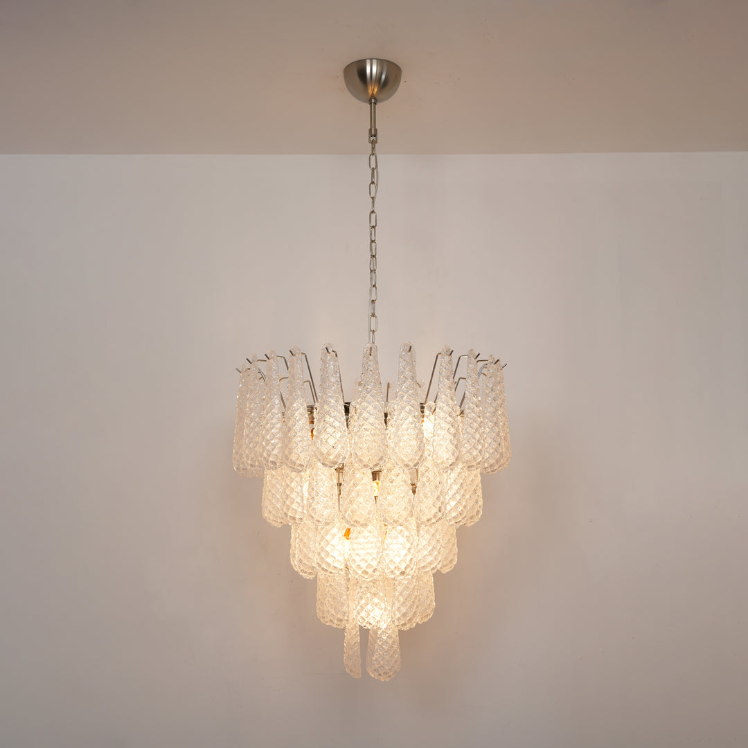 Indulge in opulence with our Murano Glass Droplet Chandelier. Handcrafted with intricate diamond textures, this piece brings elegance and warmth to any space. Its unique waterfall design creates a dazzling cascade of light, making it the perfect addition to grand dining rooms, boutique hotels, or sophisticated living spaces. Elevate your interior with this statement of art and craftsmanship.