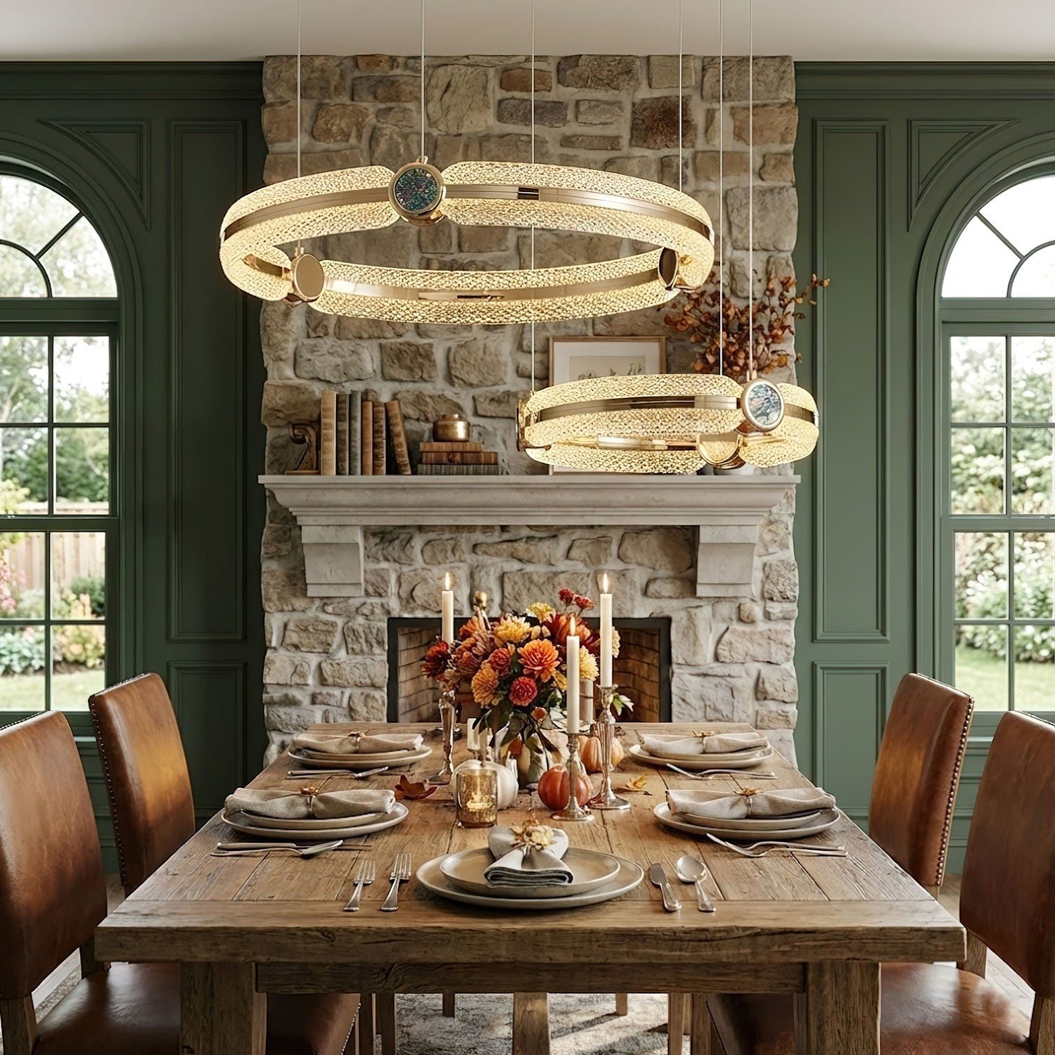 - Multiple Pendants: For long rectangular tables, two or three smaller pendants spaced evenly above the table create a balanced look.