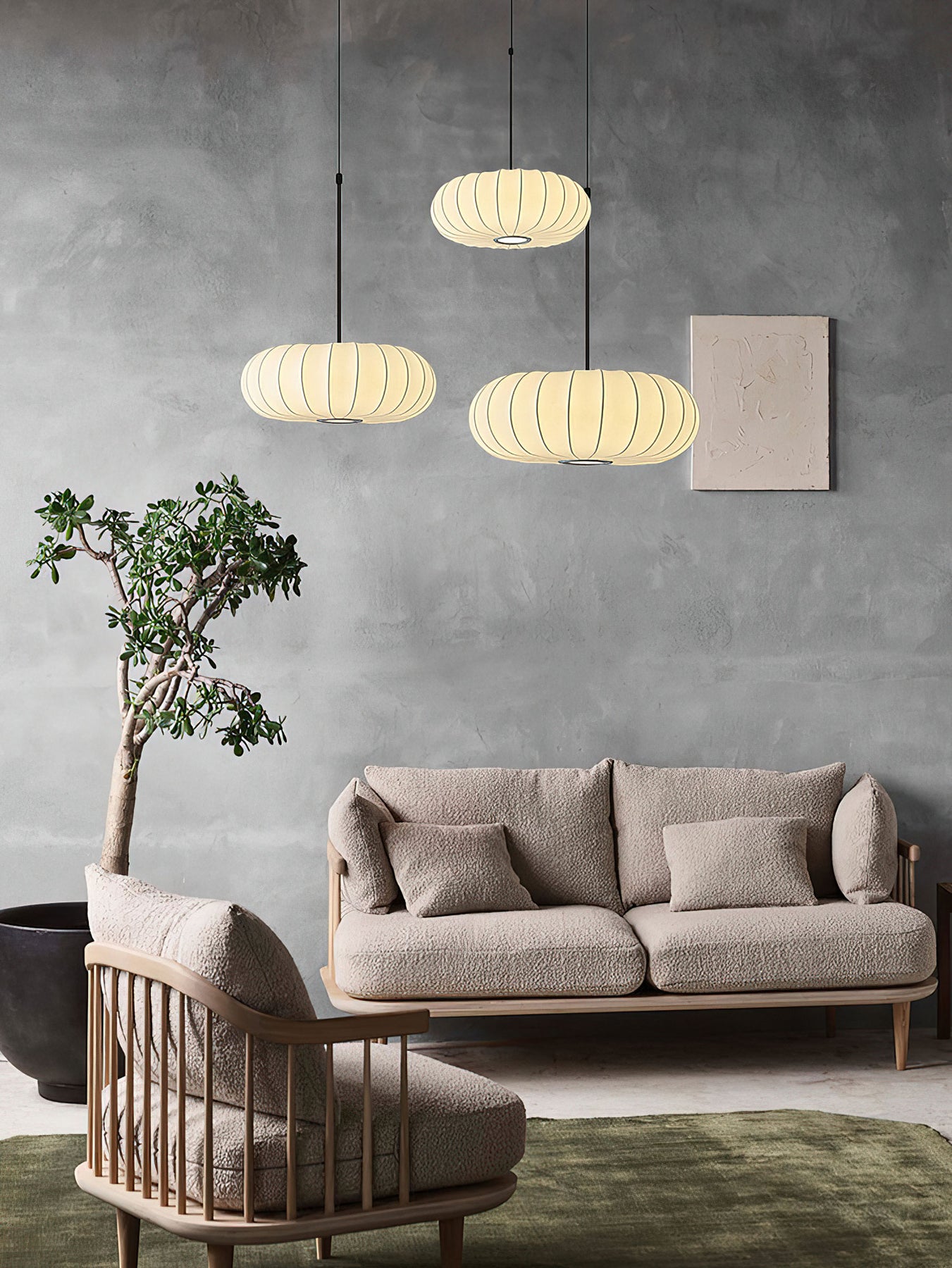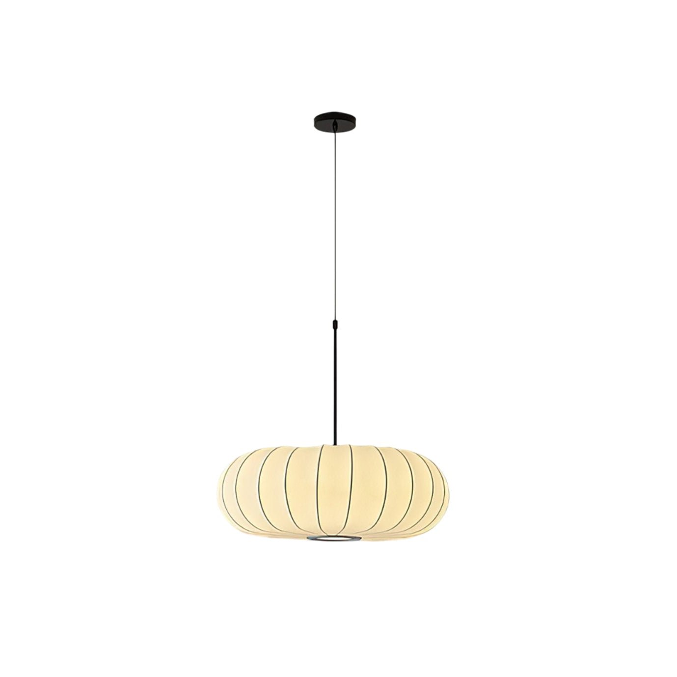 The Lantern Glow Pendant Lamp draws inspiration from the soft elegance of traditional paper lanterns. Its rounded silhouette and vertical ribbing create a sculptural form that diffuses light evenly, casting a warm and inviting glow. Suspended from a slim black rod, it blends classic charm with modern simplicity. Perfect for dining rooms, living spaces, or bedrooms, this pendant lamp adds a serene ambiance while serving as a refined decorative statement.