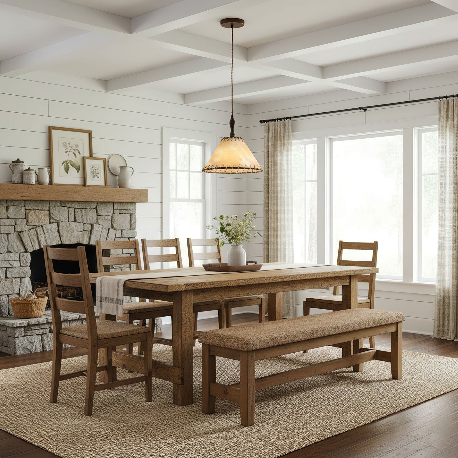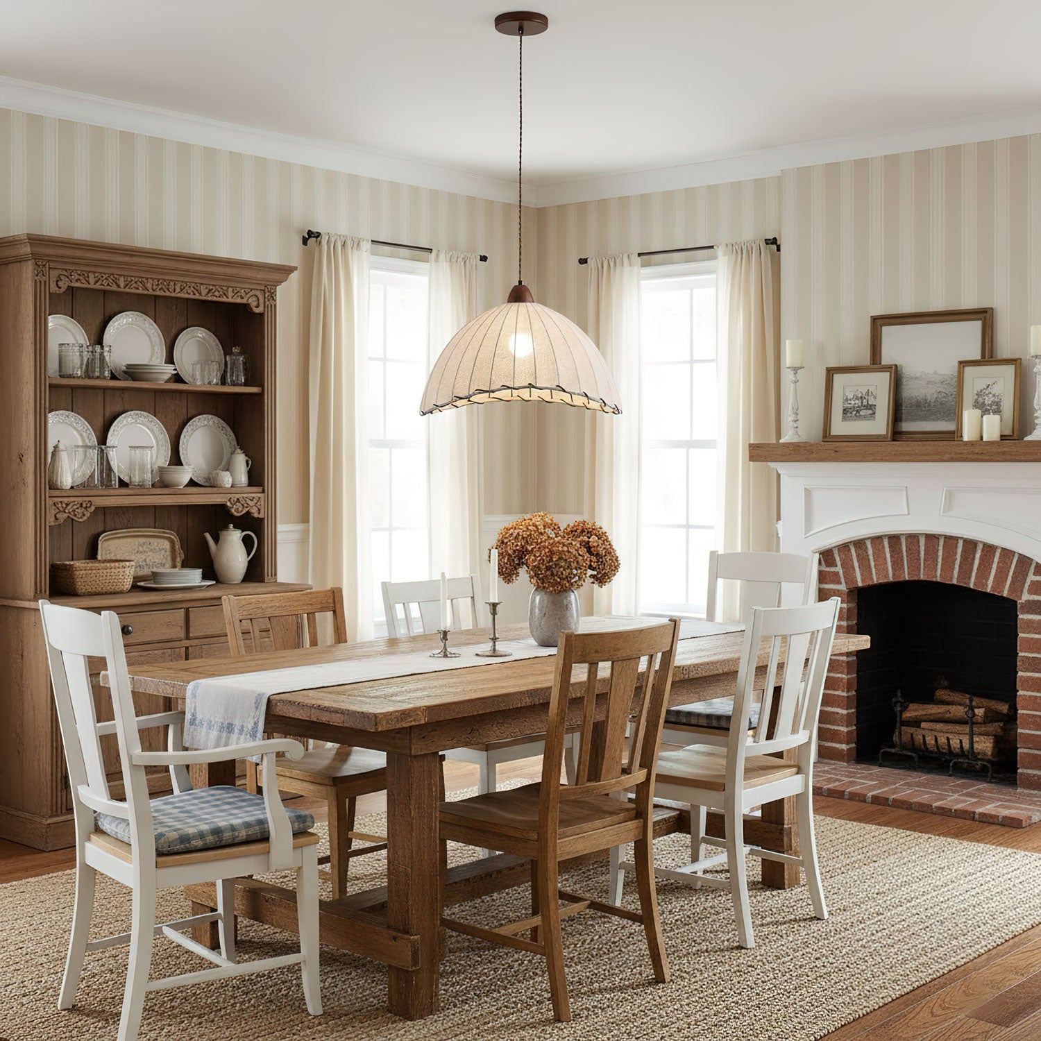 With a Wabi-sabi style design and tranquil elegance, the Wood and Fabric Series Pendant Lamp infuses your dining area with serenity and contemplation. The textured fabric shade softly diffuses light, while the walnut finish adds a natural sophistication. This minimalist lamp creates a peaceful dining experience with its quiet beauty.