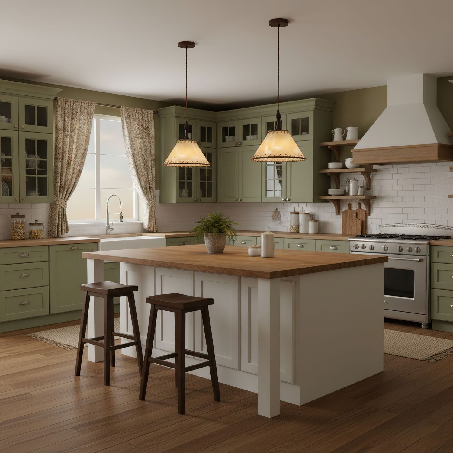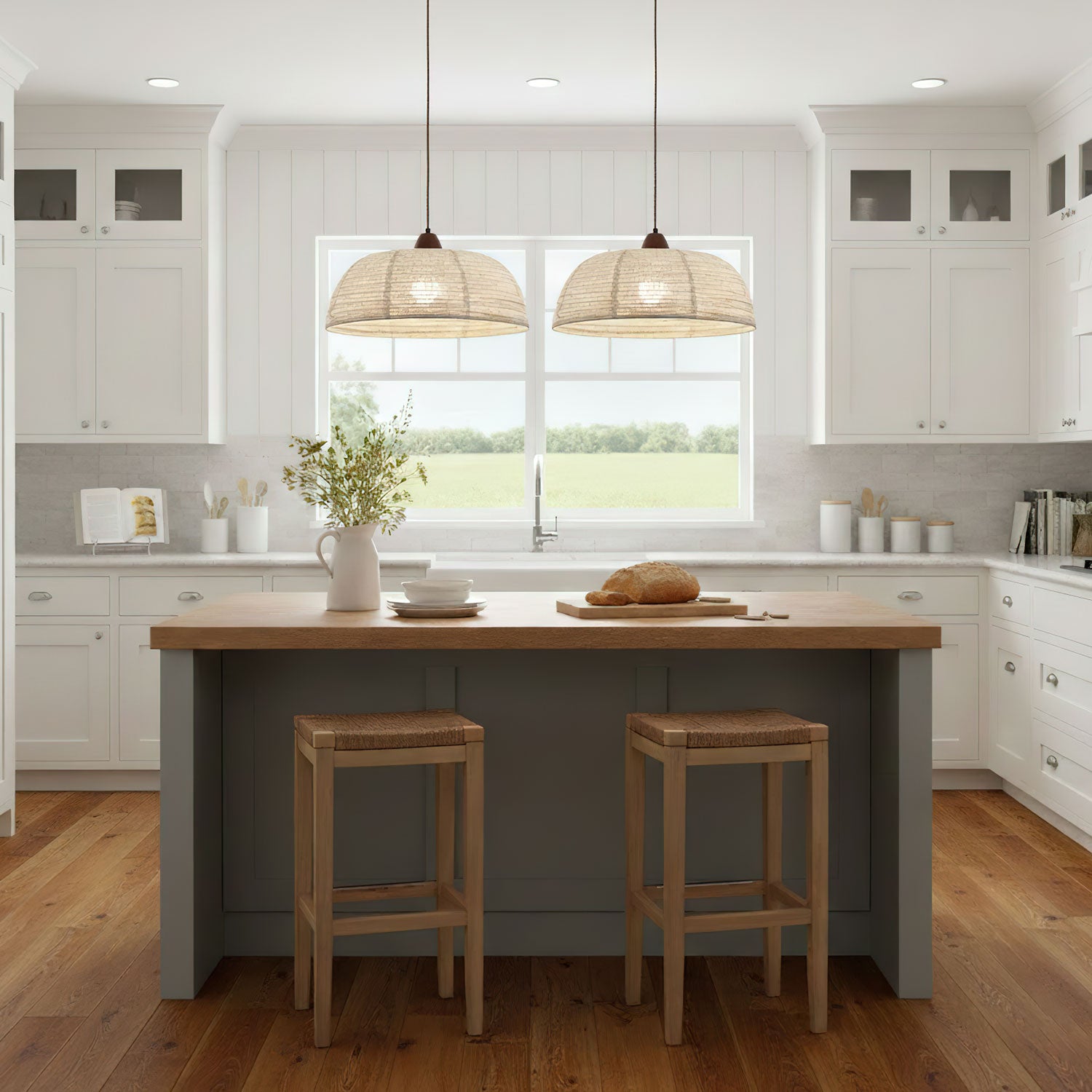 Pendants Over Island: These provide crucial task lighting for food prep and should hang 32-36 inches above the surface. Make sure that each pendant is about 1/4 the length of the island to provide sufficient coverage without overwhelming the space.