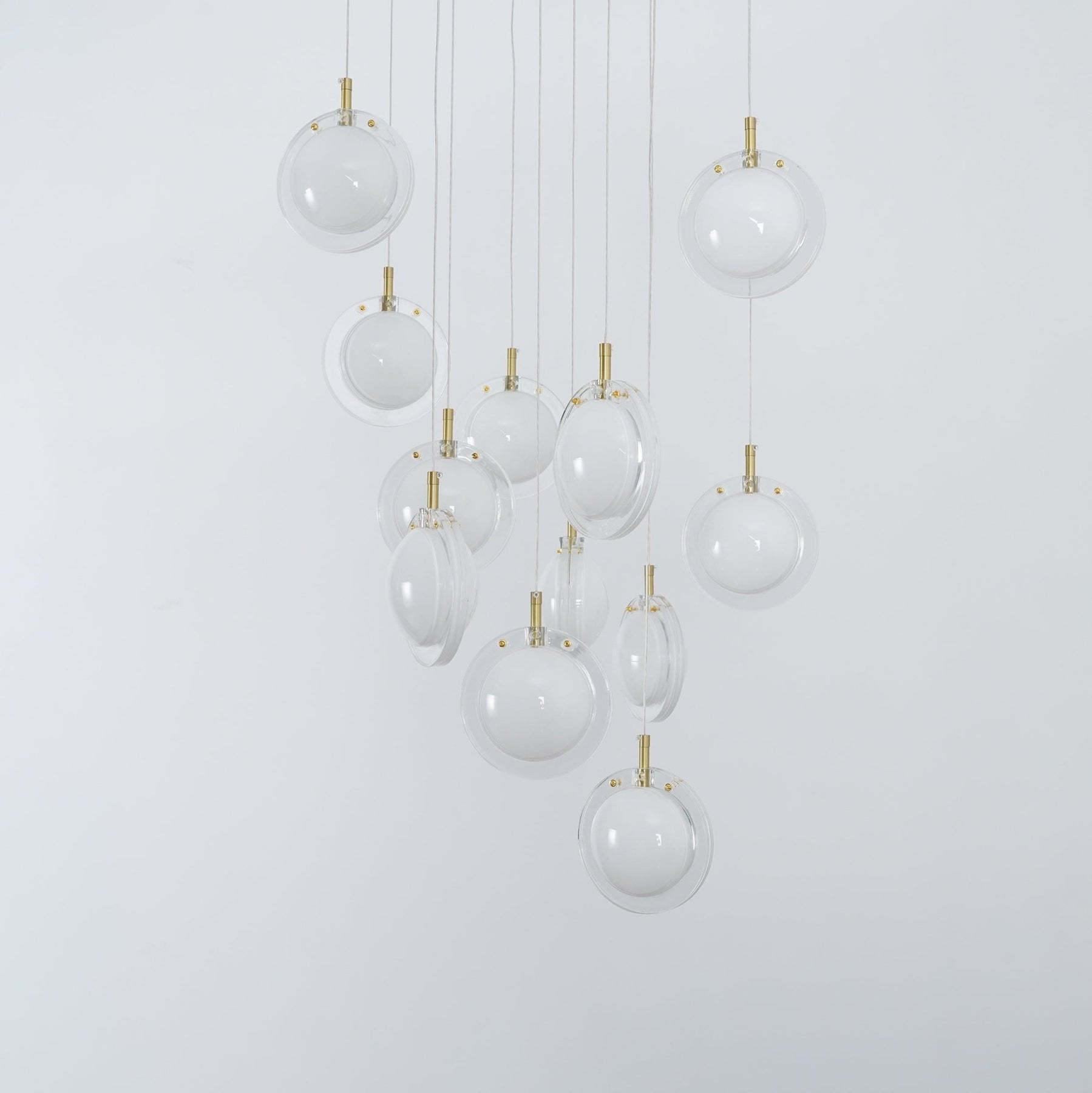 Enhance vertical spaces with cascading pendant arrangements that follow the natural rise of the staircase. The layered height and soft glow create a dramatic, sculptural presence from the first floor to the next.