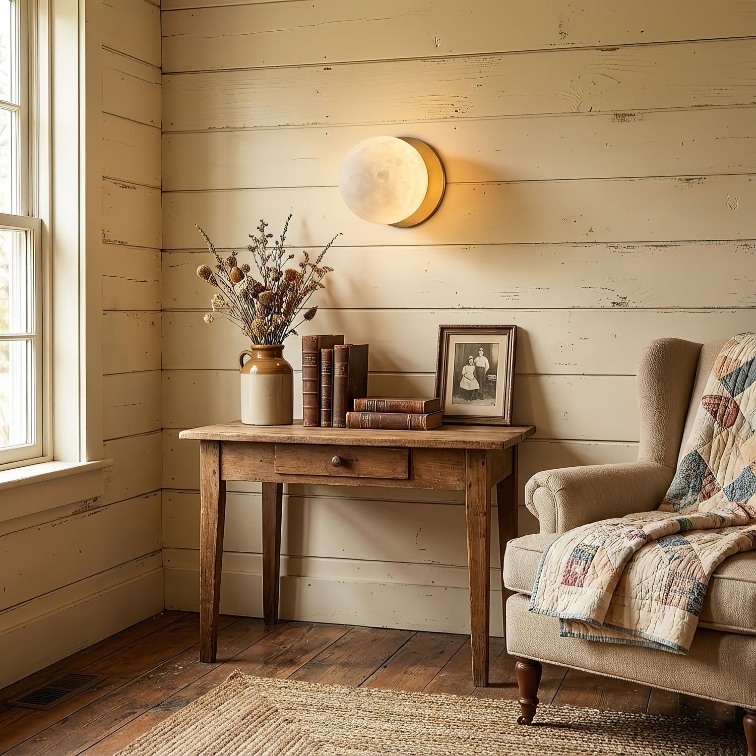 Alabaster’s translucent stone diffuses light into a soft,