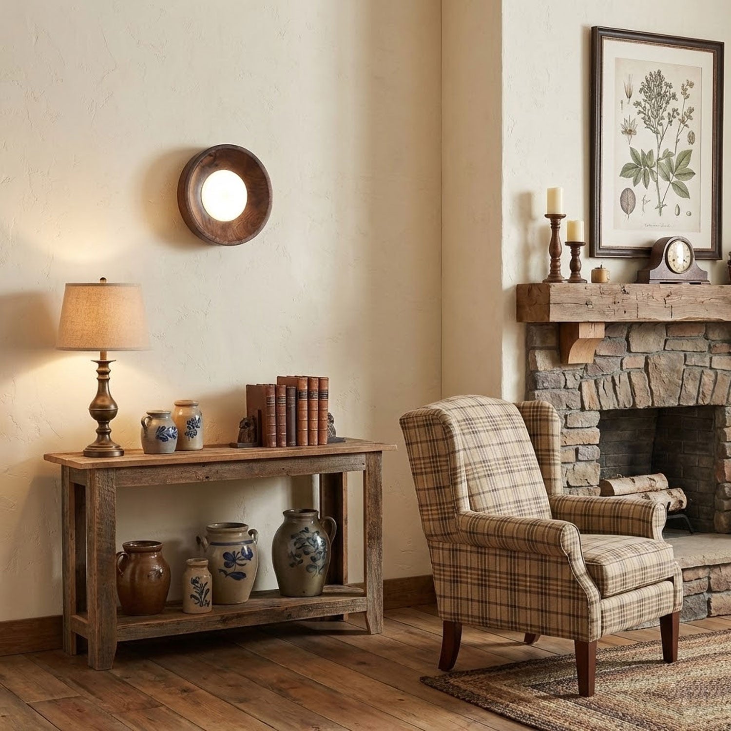 Caldera Wall Lamp The Caldera Wall Lamp combines the natural elegance of wood with the modern functionality of an acrylic light source. Featuring a rich, walnut wood frame that gently encircles the soft glow, this minimalist fixture brings sophistication and a warm, ambient light to any room. Its sleek design fits seamlessly into contemporary or rustic interiors, making it a perfect addition to enhance any modern living space.