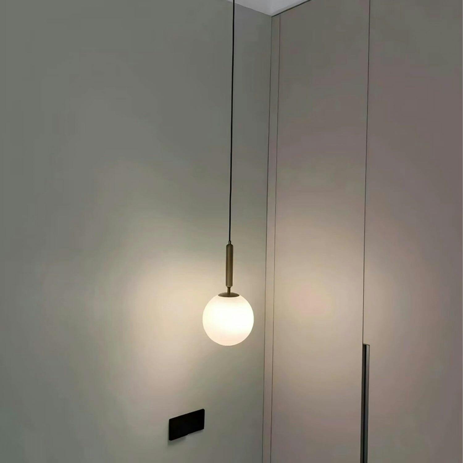 The Bosso Pendant Lamp is a perfect addition to any modern, industrial, classic, or retro interior. Its sleek brass design and white satin glass ball (12 cm diameter) add a touch of elegance to any room. Ideal for placement above a table, countertop, kitchen island, or in a bedroom.