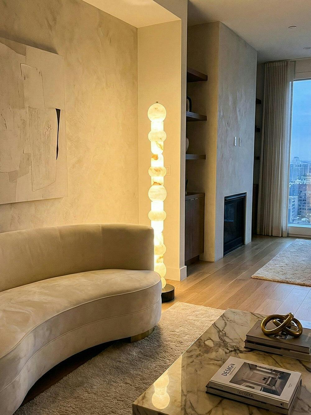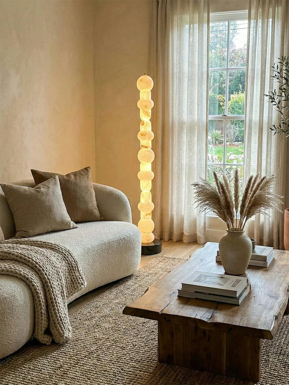 More than just a source of light, this striking floor lamp serves as a statement piece, infusing any contemporary living space with a serene and luxurious ambiance. Perfect for sophisticated lounges or minimalist bedrooms, the Alabaster Beacon Column Floor Lamp celebrates the union of natural beauty and artistic craftsmanship.
