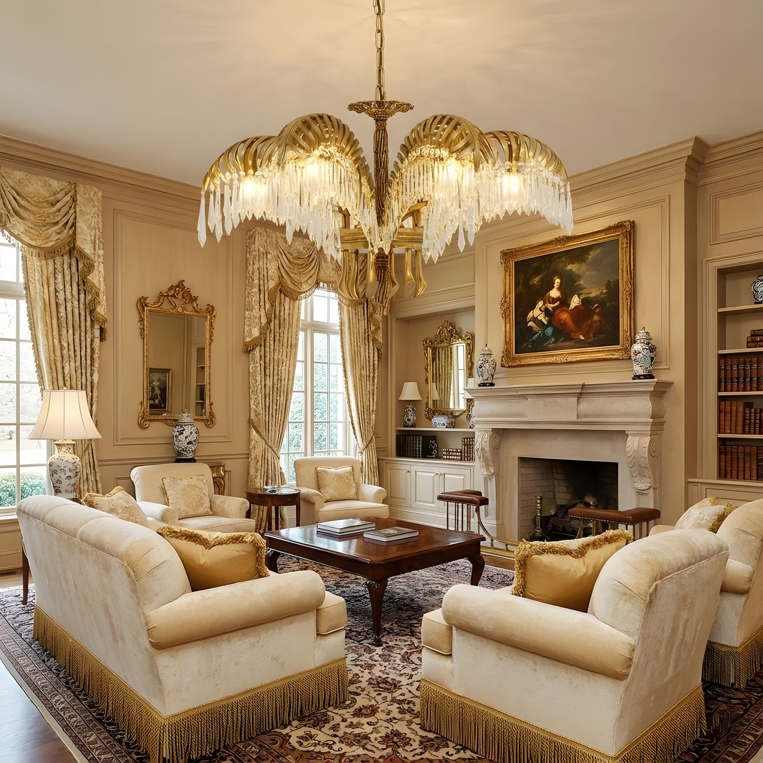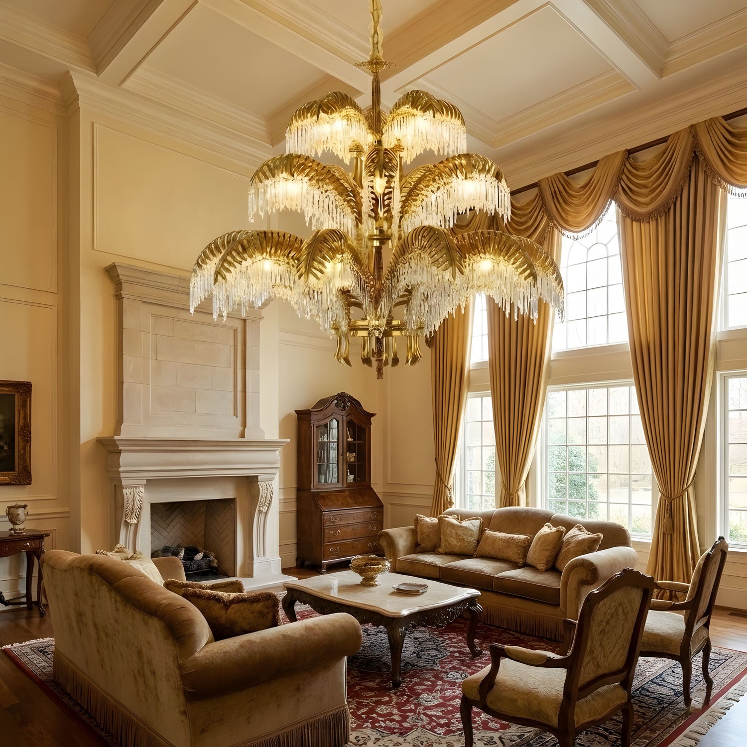 Brass Palm Leaf Crystal Chandelier - Vakkerlight