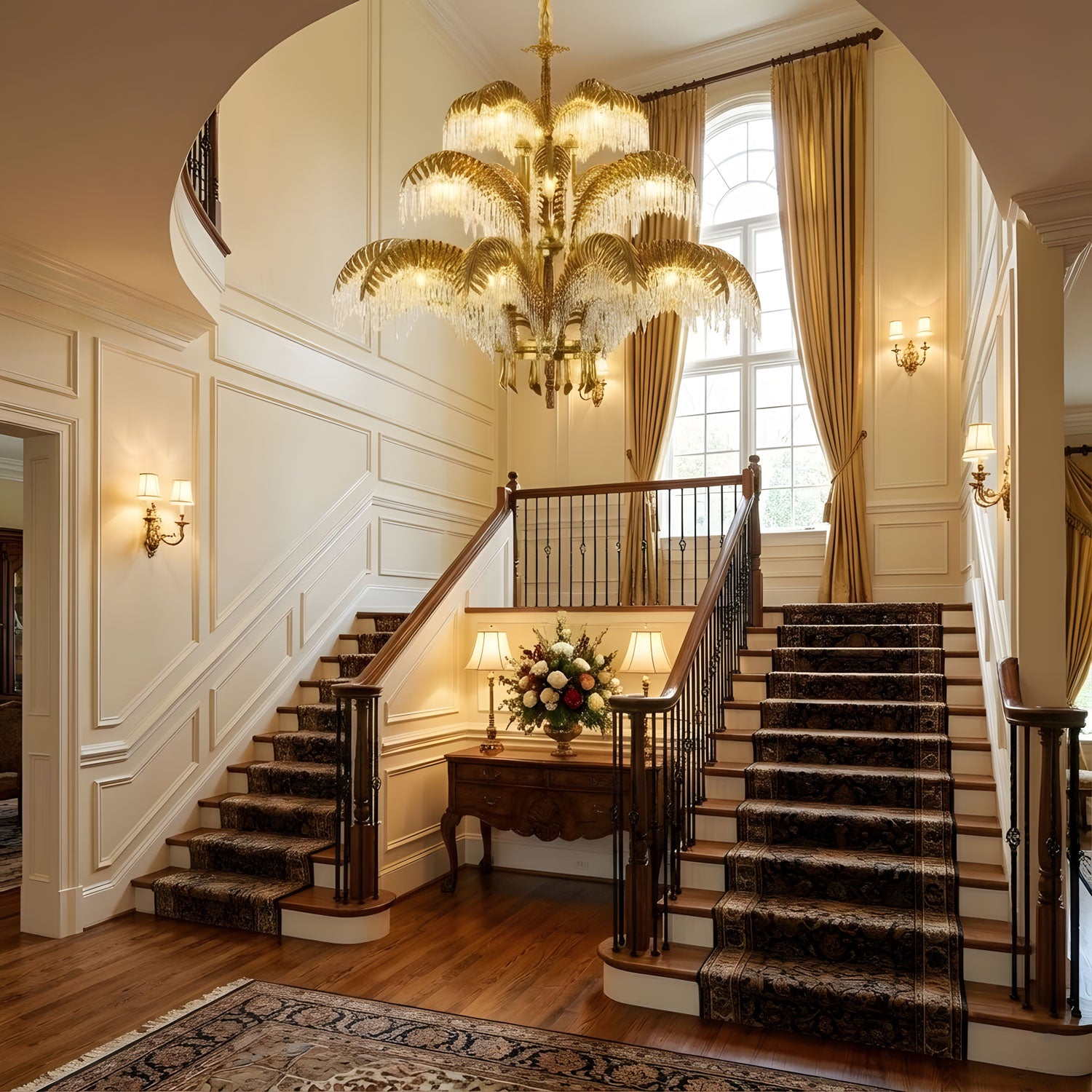 Enhance vertical spaces with cascading pendant arrangements that follow the natural rise of the staircase. The layered height and soft glow create a dramatic, sculptural presence from the first floor to the next.