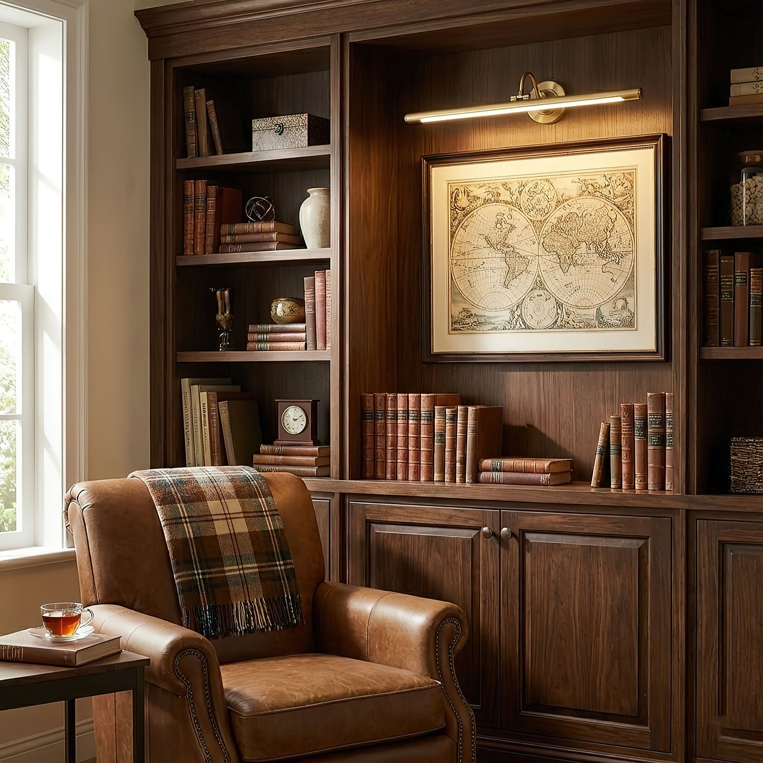 The Archer Art Light, with its antique gold finish and extended bar design, is perfect for highlighting artwork or mirrors. Archer’s classic elegance brings an elevated touch to galleries and living spaces alike.