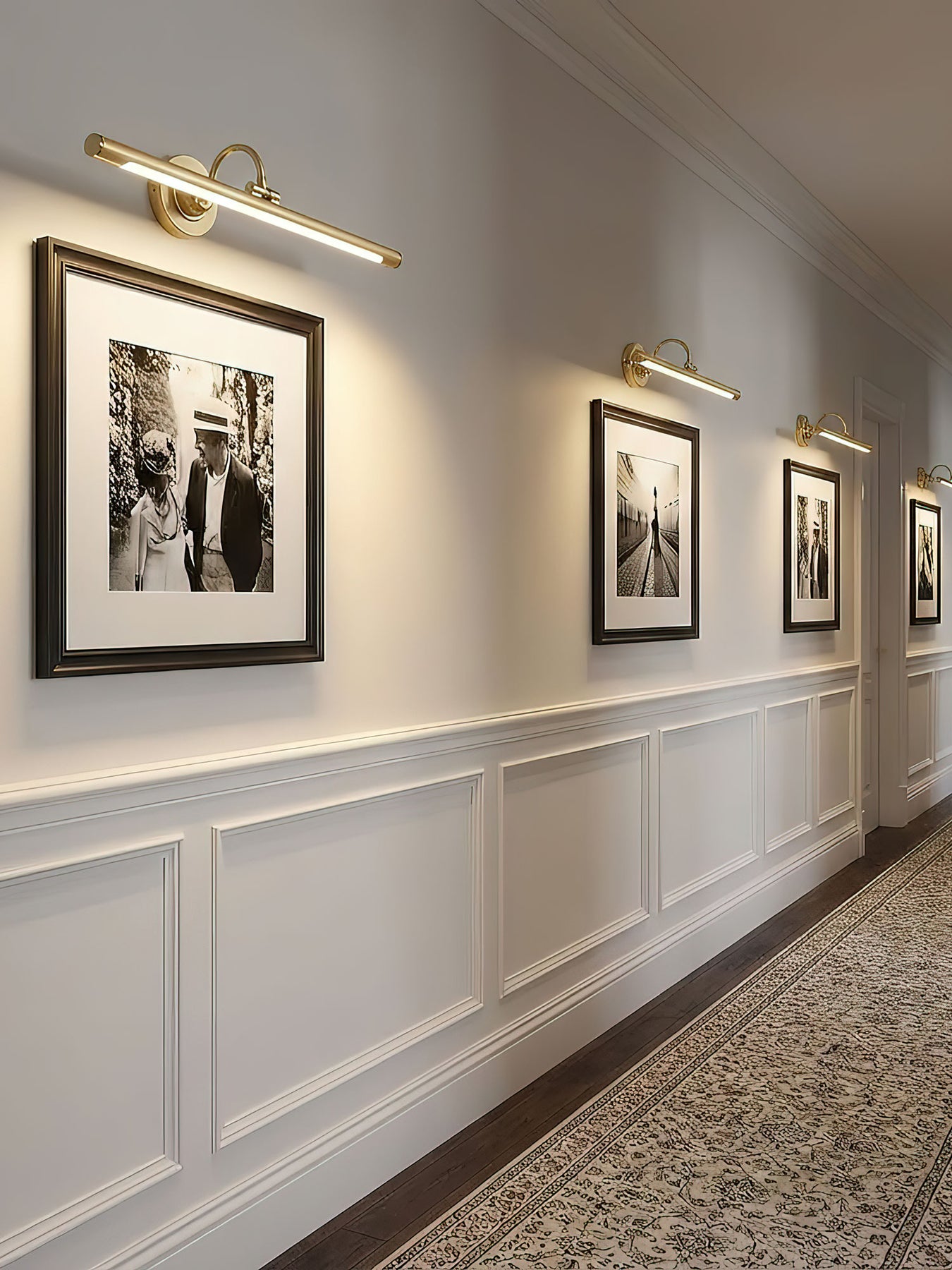 Hallway Lighting: Recessed or flush mount lights spaced evenly (every 8-10 feet) create a well-lit and inviting space.
