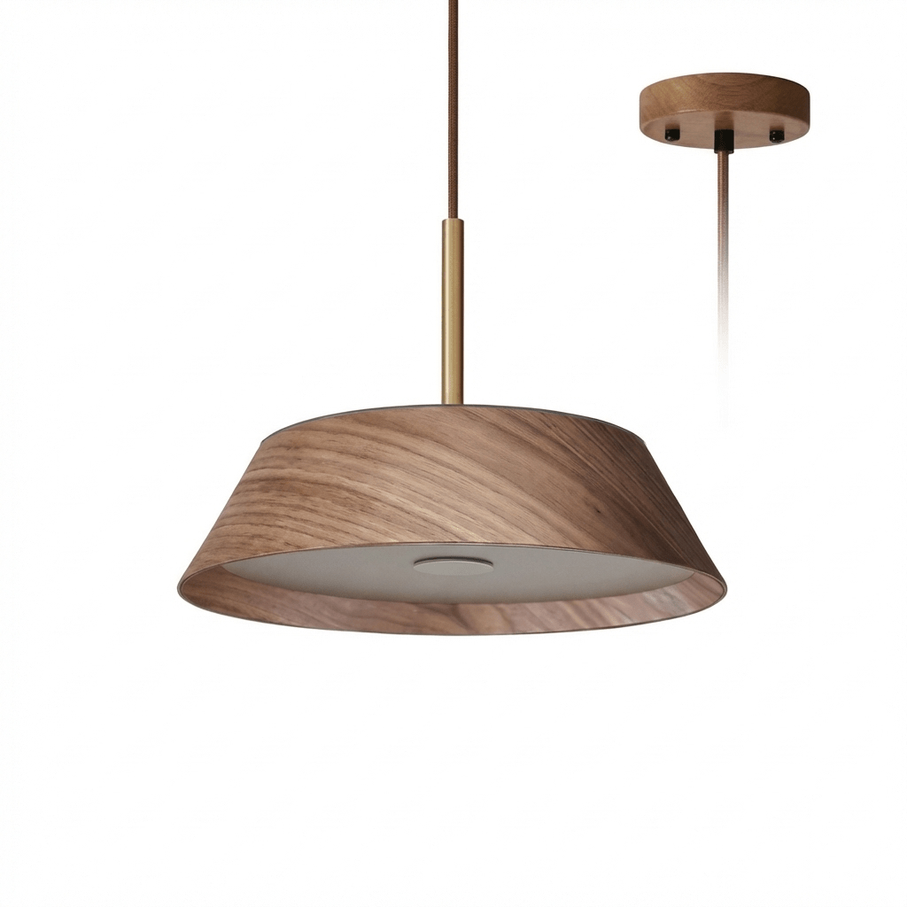 A refined pendant light featuring a smooth natural wood shade with a gently flared silhouette. The clean circular diffuser provides soft, even illumination, while the warm wood grain adds organic texture and calm visual warmth. A subtle brass stem detail enhances the modern yet timeless design. Created by Vakkerlight, the Varen Wood Pendant brings Scandinavian simplicity and natural elegance to dining areas, kitchen islands, or cozy living spaces.