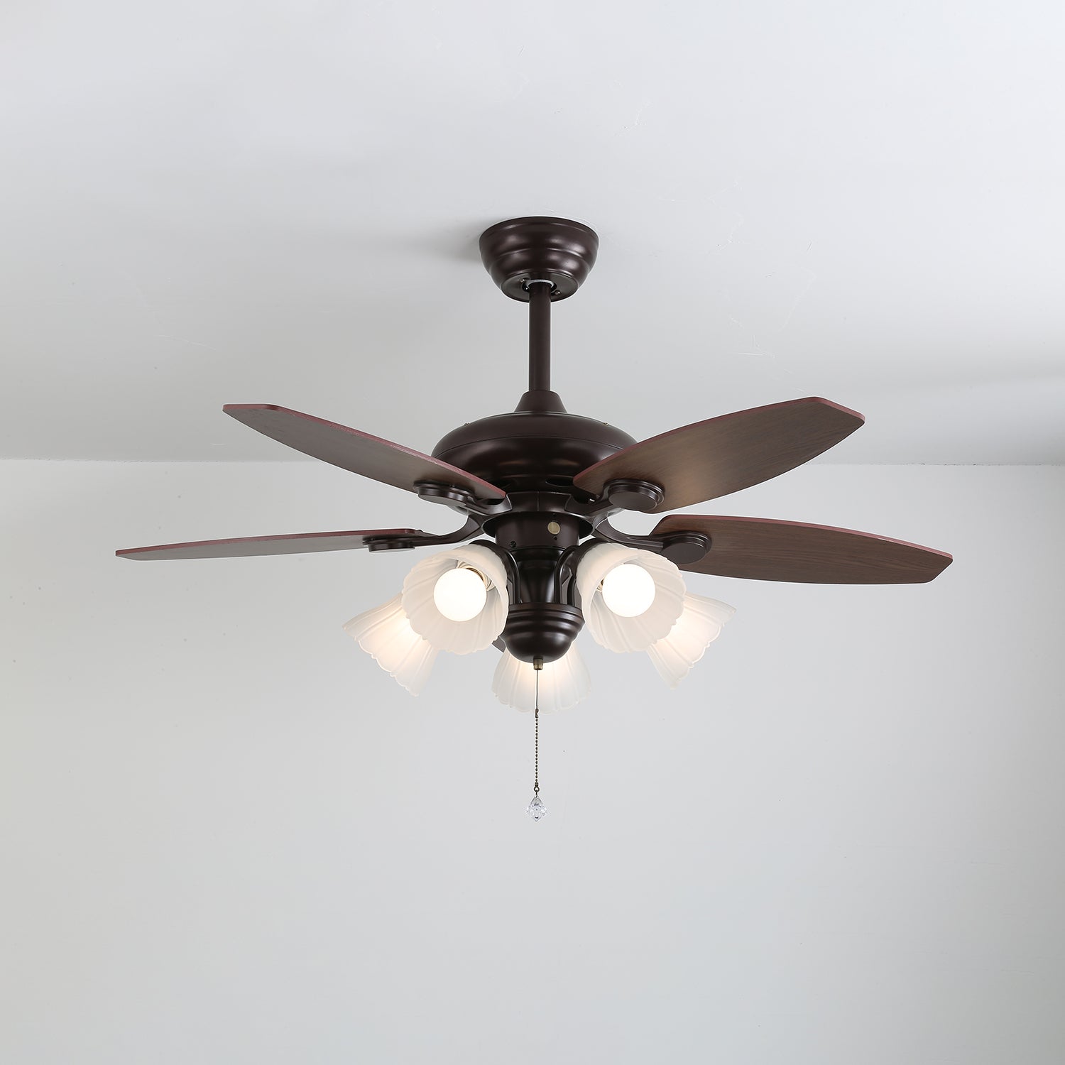 Materials: Metal frame, Wooden blades, glass shade, pure copper motor.