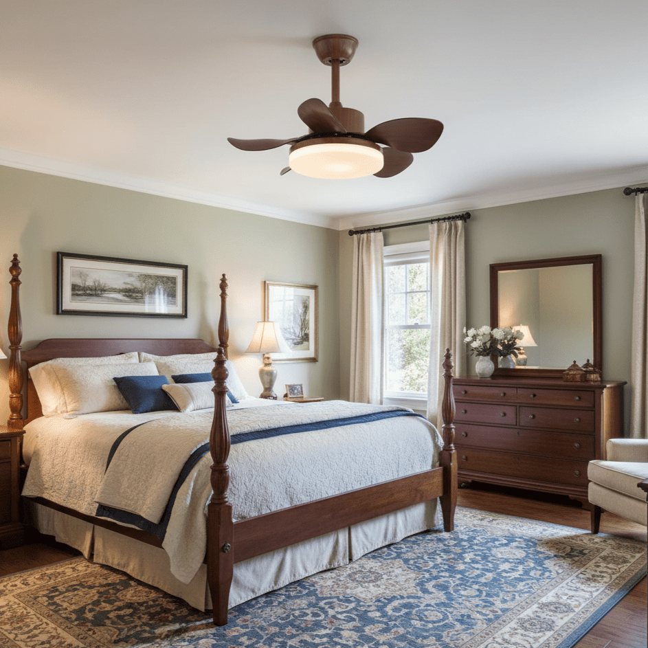 With its deep walnut blades and beautifully carved housing, the Terra brings natural sophistication to any ceiling. The five-leaf blade design ensures balanced airflow, while the wide frosted LED diffuser adds a soft, ambient glow—an ideal match for warm, earthy interiors.