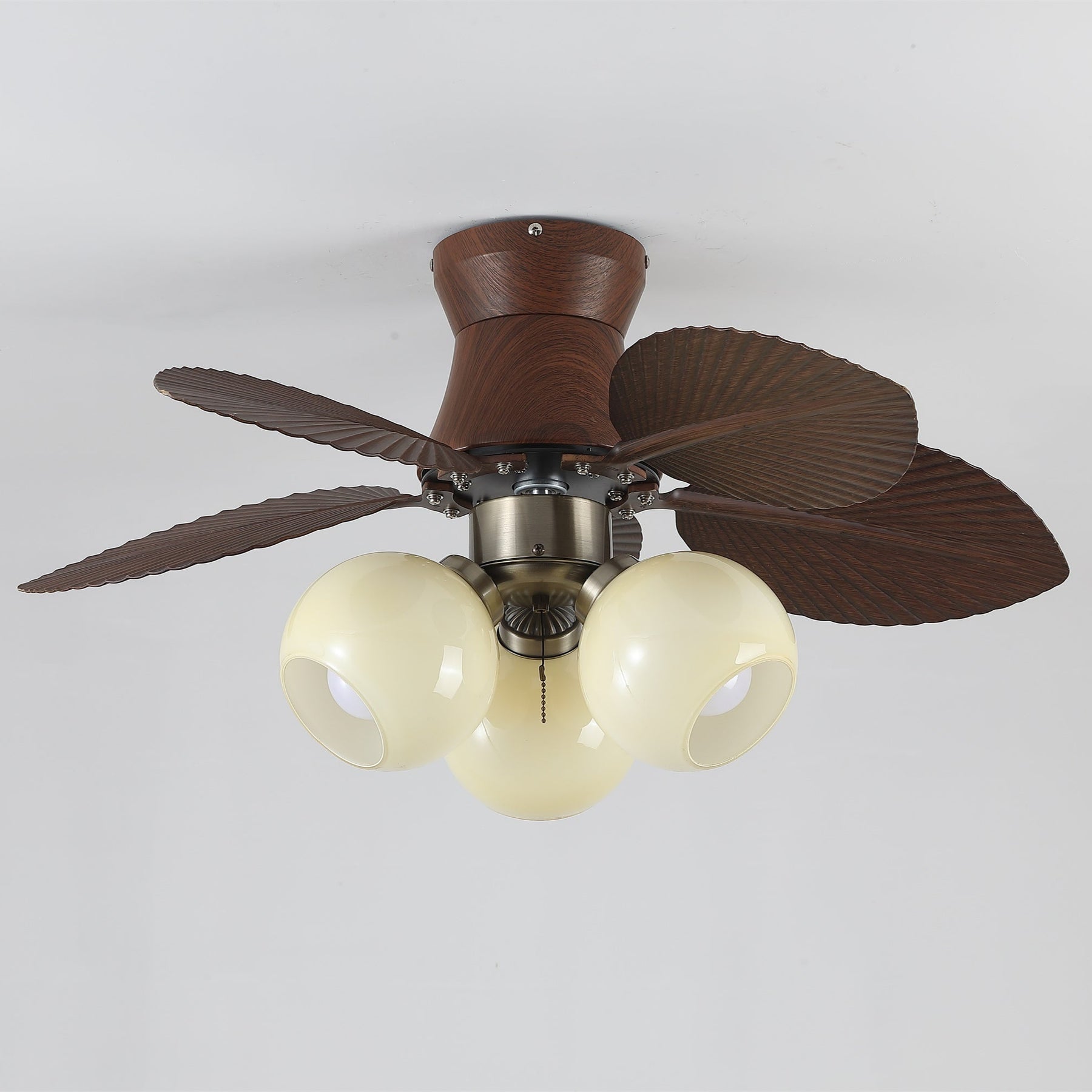 Materials: Metal frame, ABS blades, glass shade, pure copper motor.