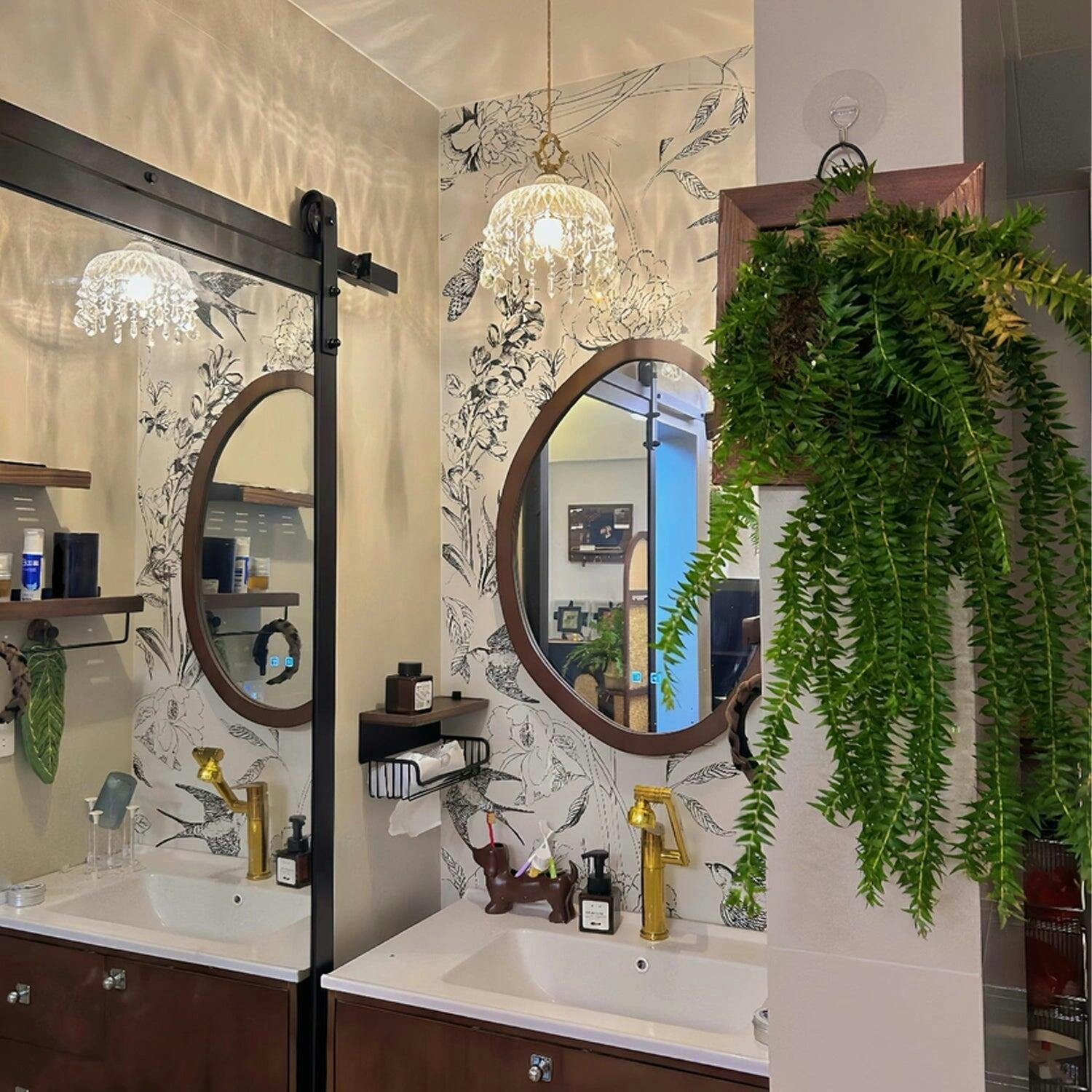 | Bathroom | Use the room dimension formula for general ceiling lights. | Vanity lights, sconces, flush mounts, recessed lights. | Sconces should be mounted 65-70 inches from the floor, and 24 inches above vanity mirrors for proper task lighting. |
