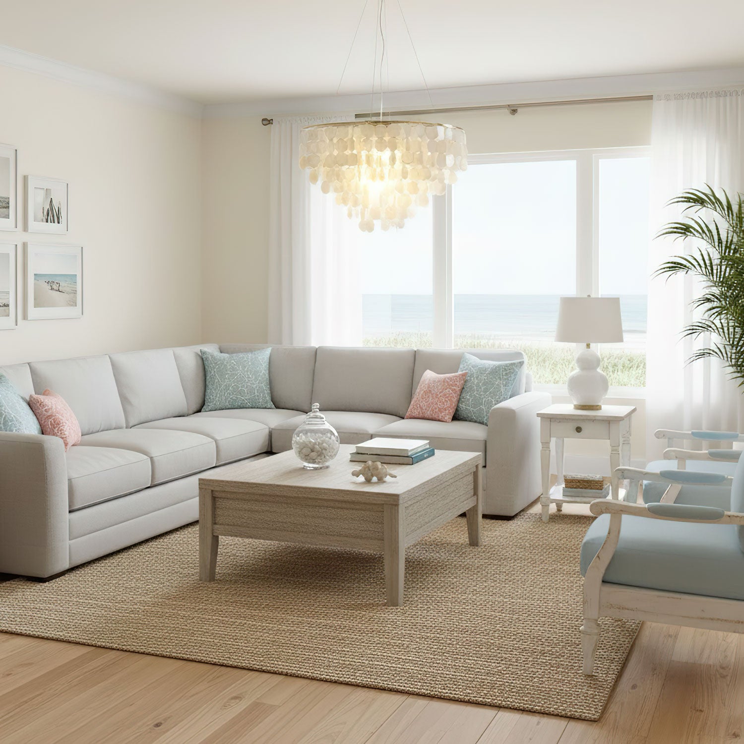Chandeliers and Pendants: These are the focal points of the living room, especially in rooms with higher ceilings. To size appropriately, use the room dimension formula and ensure the fixture is in scale with the room’s layout. A general rule is to ensure there is at least 7 feet of clearance between the fixture and the floor.