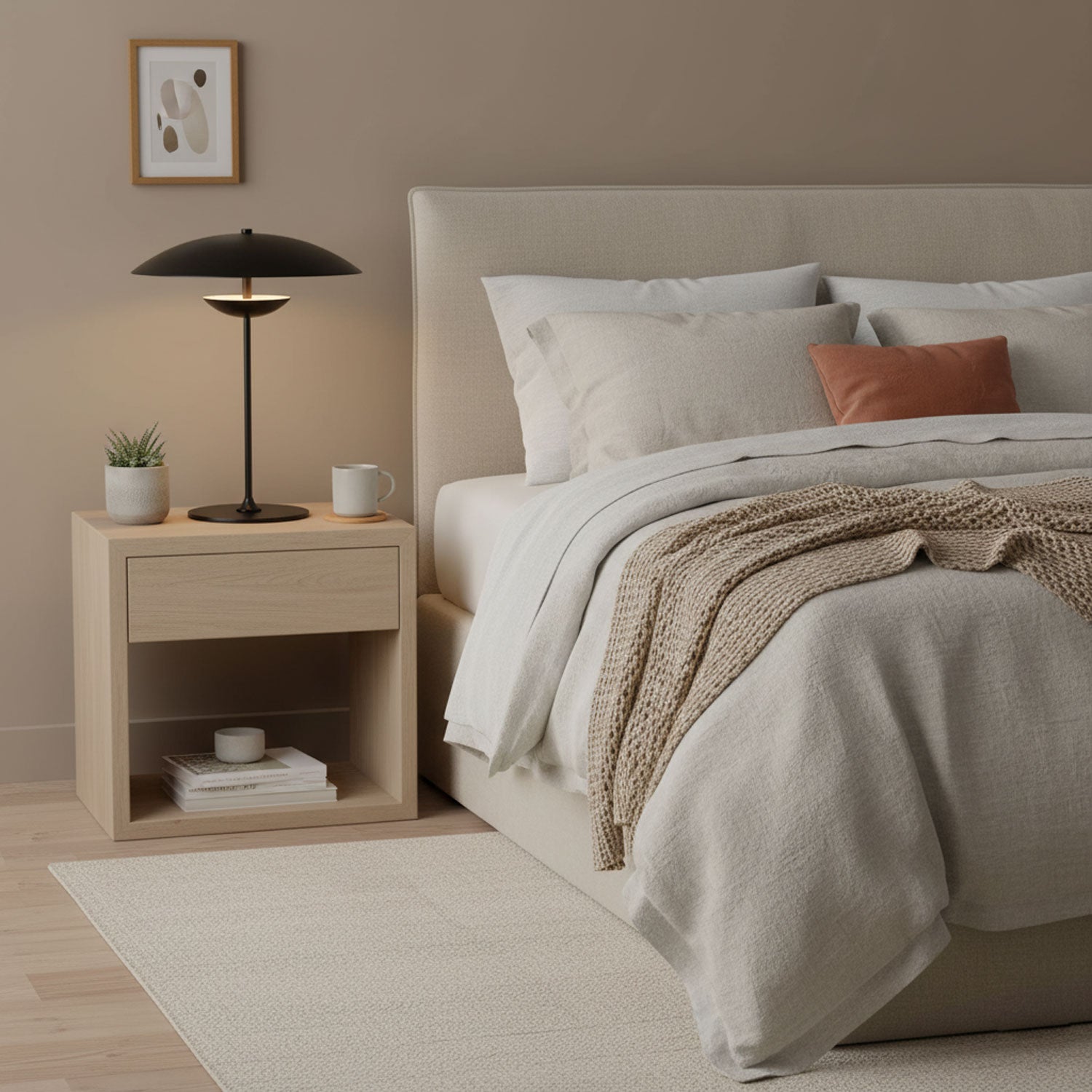 Ceiling Fixtures: Bedrooms benefit from soft, ambient lighting. Use the room dimension formula to ensure the ceiling fixture is properly scaled. Semi-flush or flush mounts work well for general lighting, while sconces or bedside lamps provide focused task lighting.
