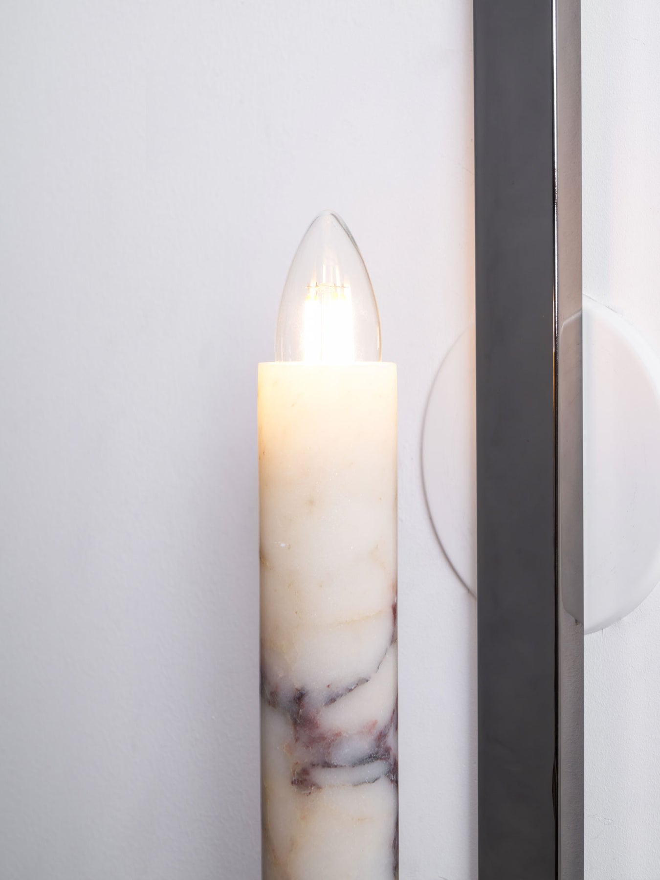 Refined, sculptural, and quietly dramatic — the Vakkerlight Lumivolt Wall Sconce reimagines classic candlelight with a bold contemporary twist. Featuring a slender alabaster-style stem and a sleek blackened metal frame, this vertical fixture evokes timeless elegance with a modern edge. The warm glow from the tapered bulb adds a subtle yet striking ambiance, perfect for hallways, staircases, or flanking a mirror or fireplace. The Lumivolt brings balance, contrast, and architectural grace to any interior, embodying Vakkerlight’s signature fusion of artistry and function.