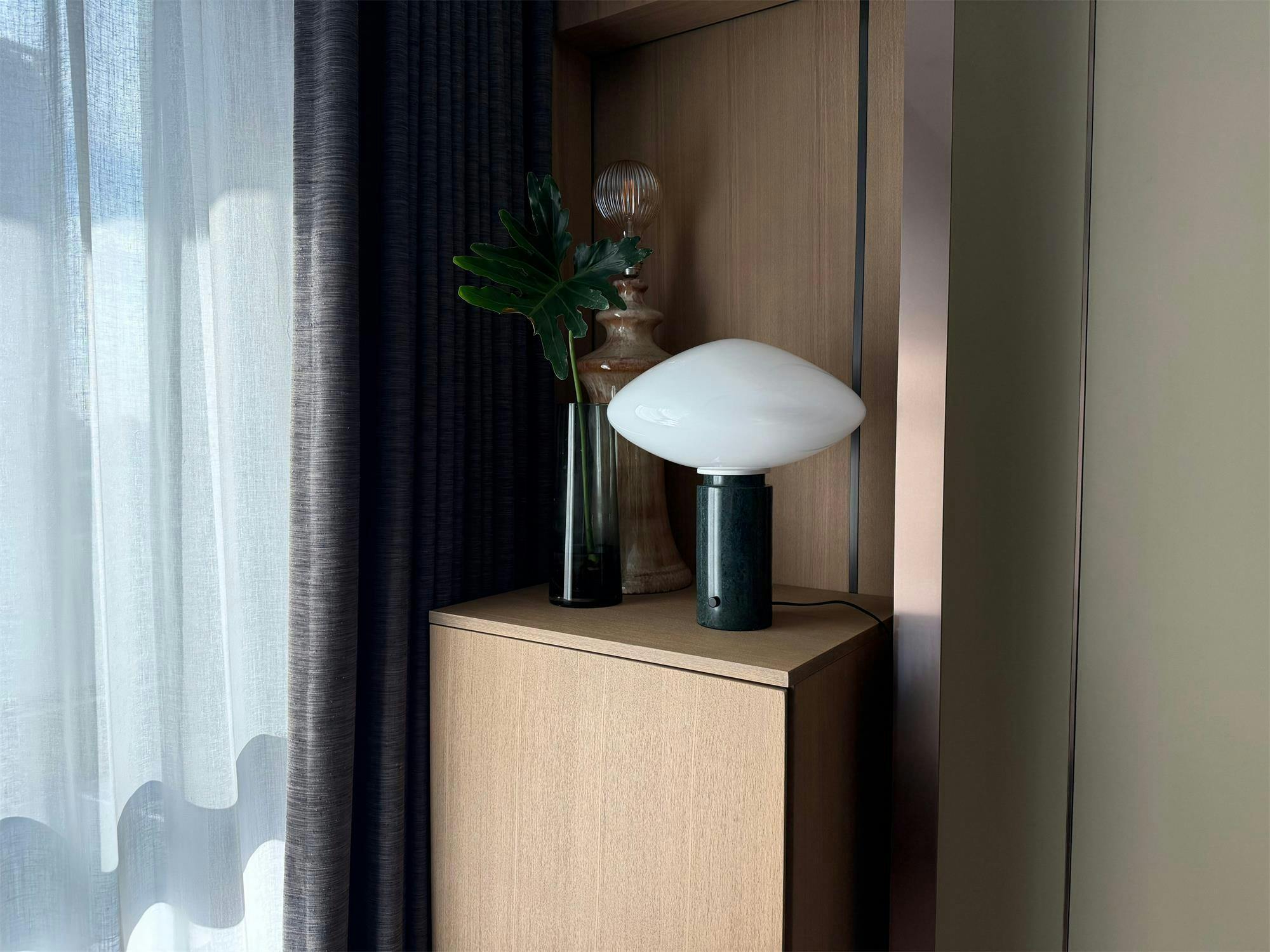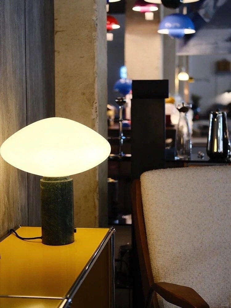 The Mist Table Lamp is designed to emit a gentle, diffused light through its alabaster lampshade. This creates a warm, inviting atmosphere in any room. Its elegant marble base adds a touch of sophistication, making it not just a functional lamp, but also a piece of art.