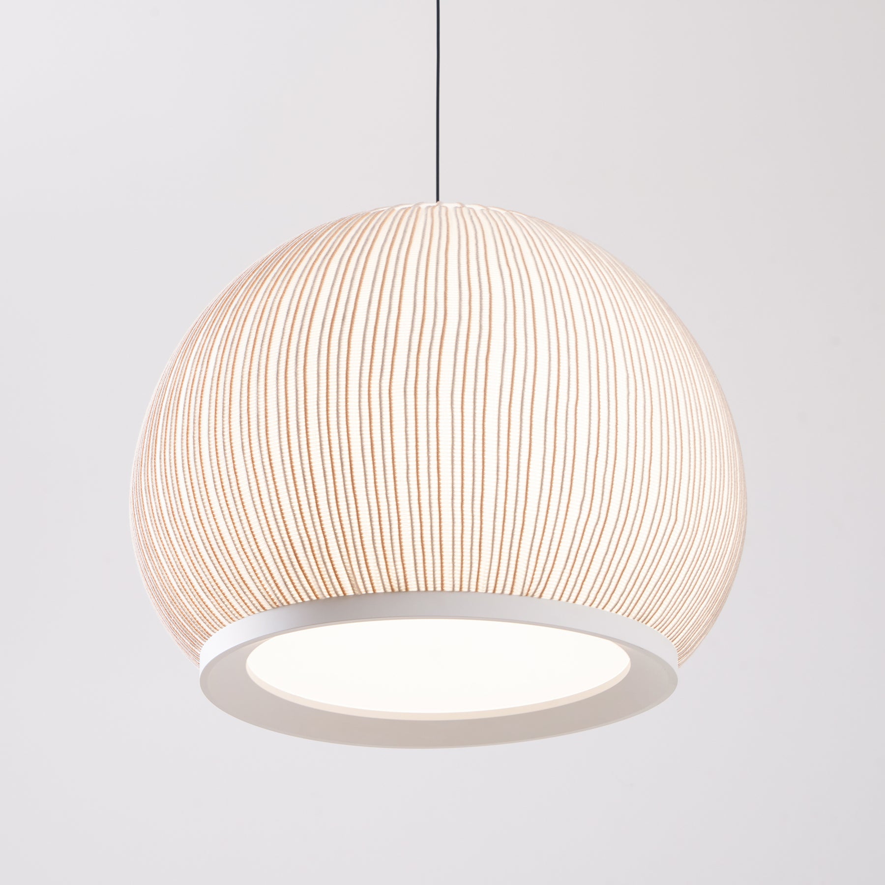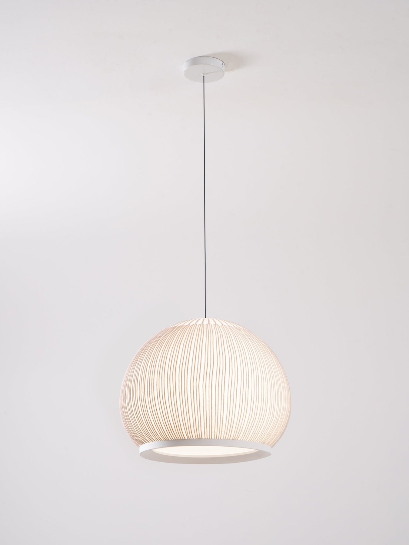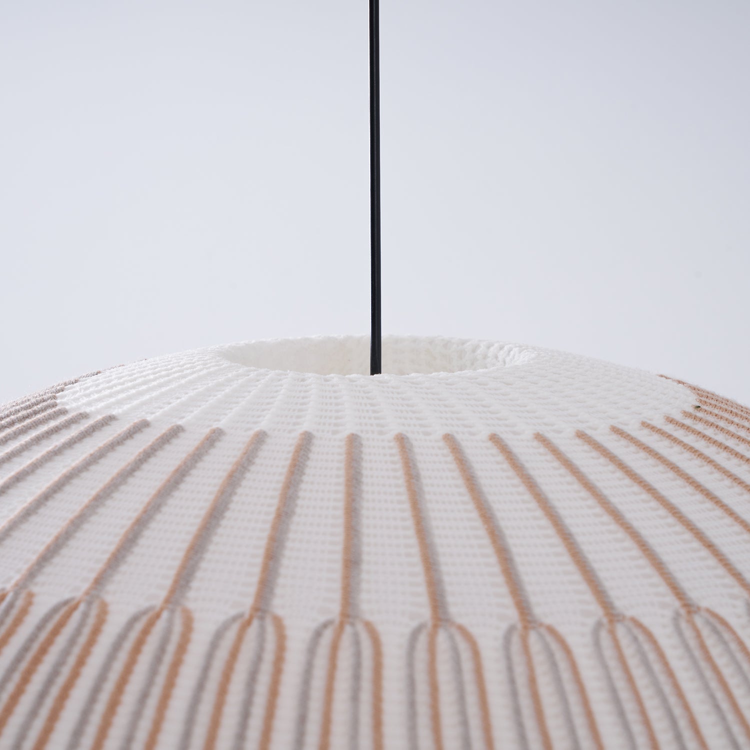 Transform your space with the modern and intimate lighting of our Knit Pendant Lamp. Featuring three unique pendants and a redesigned traditional lampshade, the light permeates through the semi-transparent diffusers, bathing the surroundings in a cozy glow. Crafted with precision and seamlessly combining fabric, diffusers, and an aluminum ring shell, each geometric shape is a work of art.