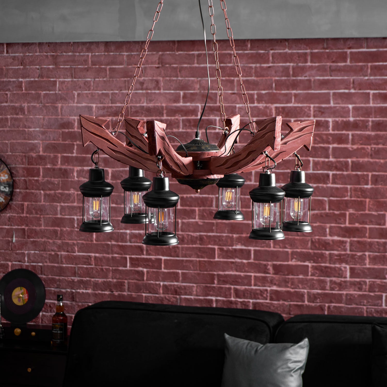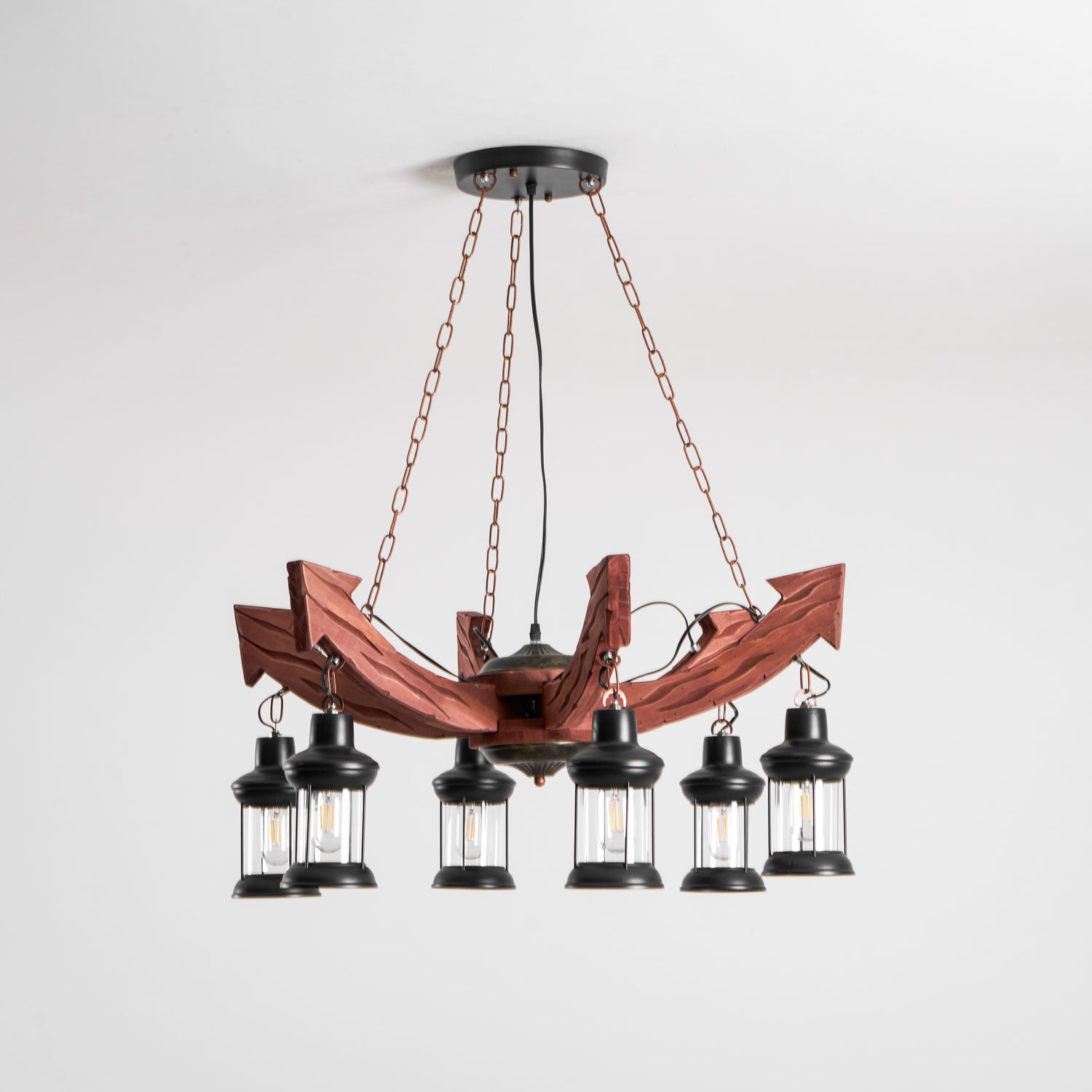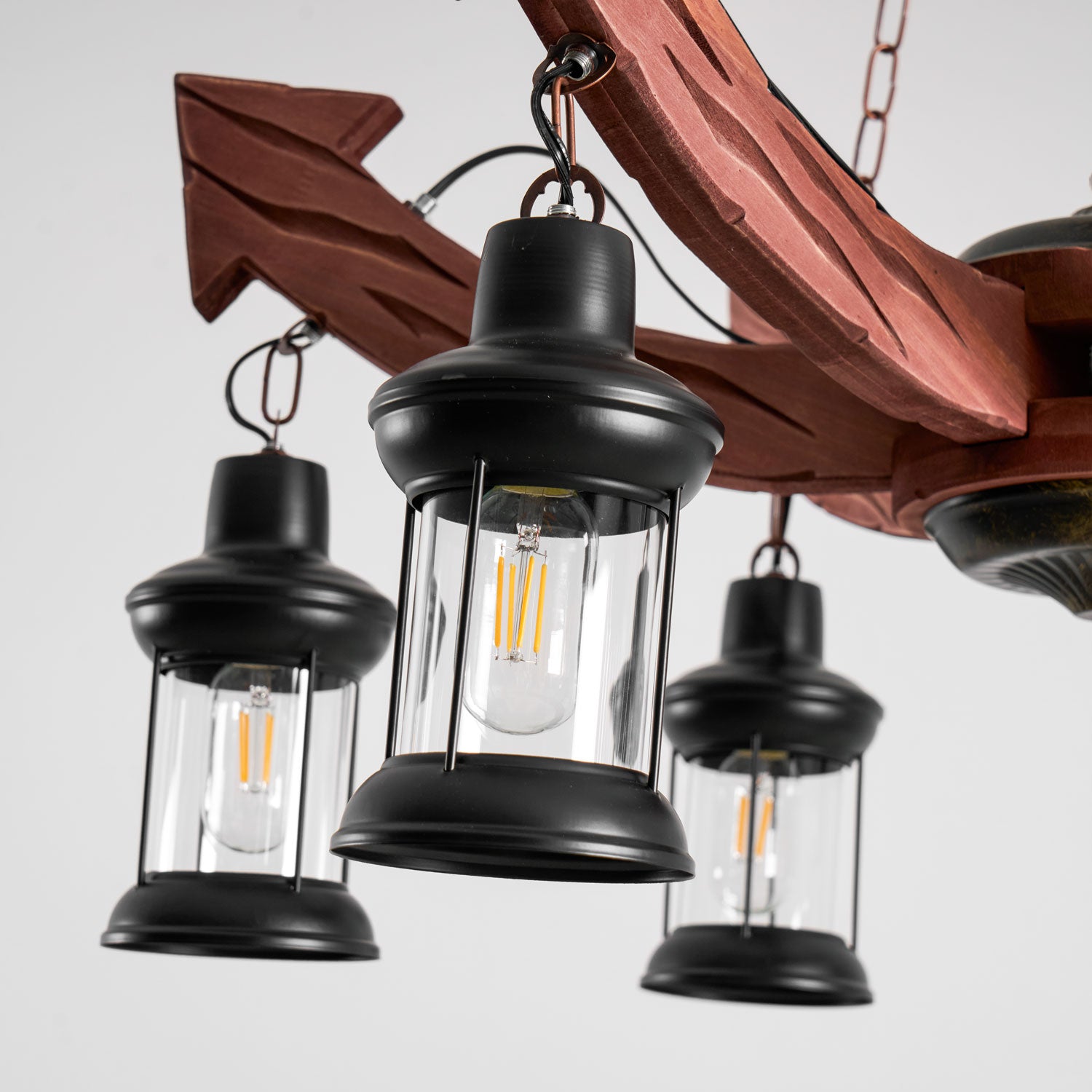 This Nautical Industrial Style Wooden Chandelier will add a touch of rustic charm to any space. The unique combination of classic American farmhouse style and sophisticated nautical industrial design creates a timeless look. Perfect for adding a statement piece to any room.