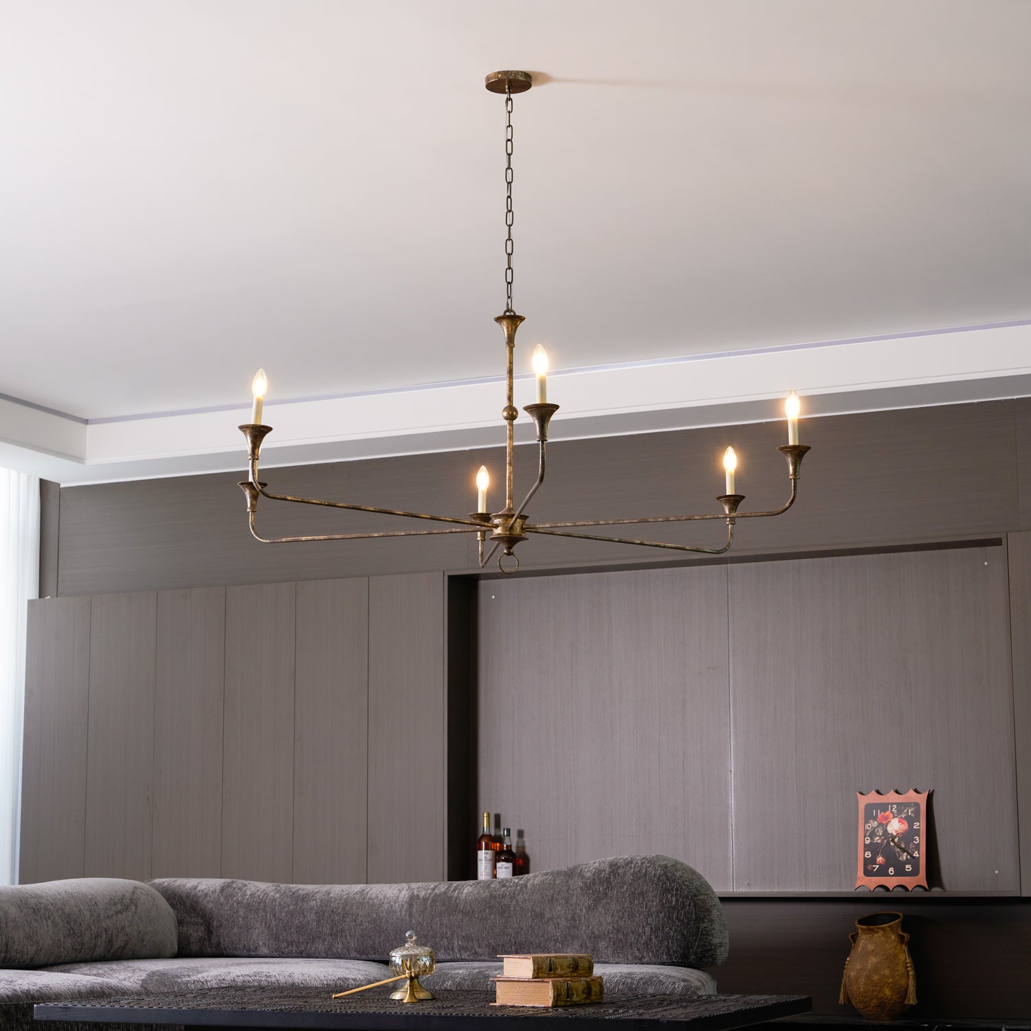 Chandeliers and Pendants: These are the focal points of the living room, especially in rooms with higher ceilings. To size appropriately, use the room dimension formula and ensure the fixture is in scale with the room’s layout. A general rule is to ensure there is at least 7 feet of clearance between the fixture and the floor.