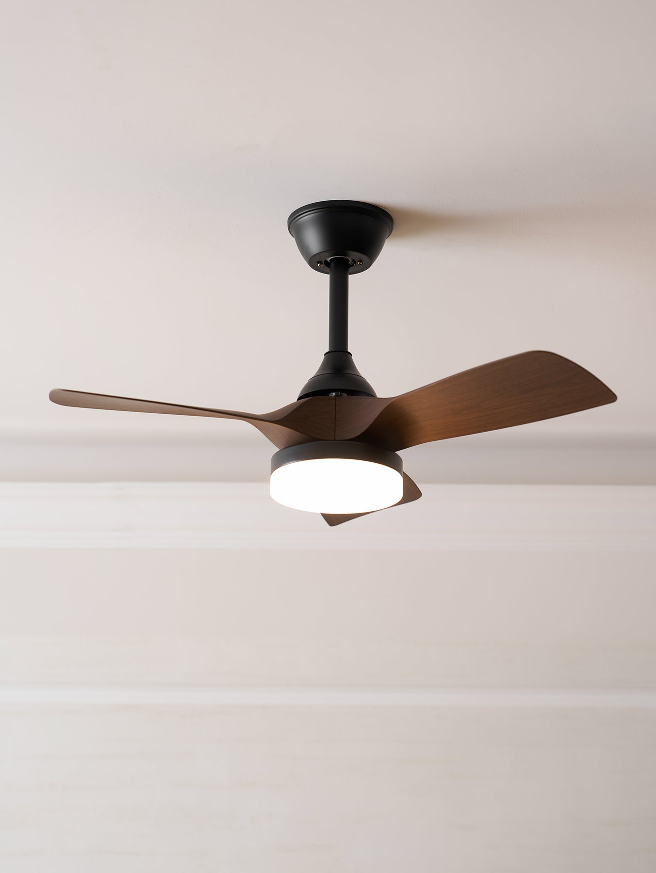 Sculptural elegance meets everyday function in the Silven Curve Ceiling Fan Light by Vakkerlight. Designed with gracefully curved walnut-finished blades and a matte black mount, this fan blends seamlessly into modern and transitional interiors. The integrated LED light casts a soft, ambient glow—perfect for bedrooms, living rooms, or cozy lounges. Quiet, efficient, and striking from every angle, it's a statement piece that cools as beautifully as it illuminates.