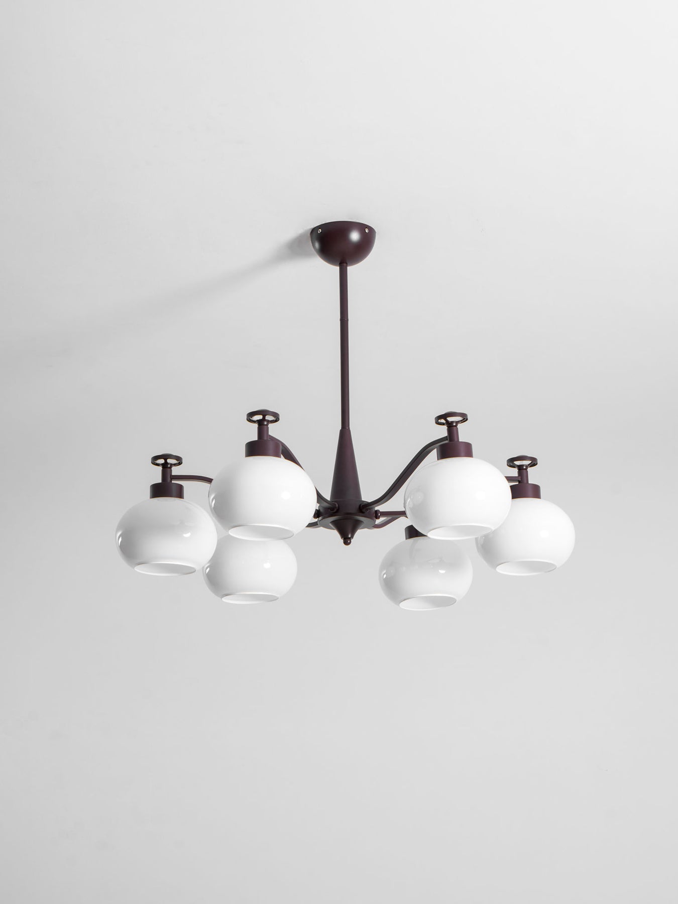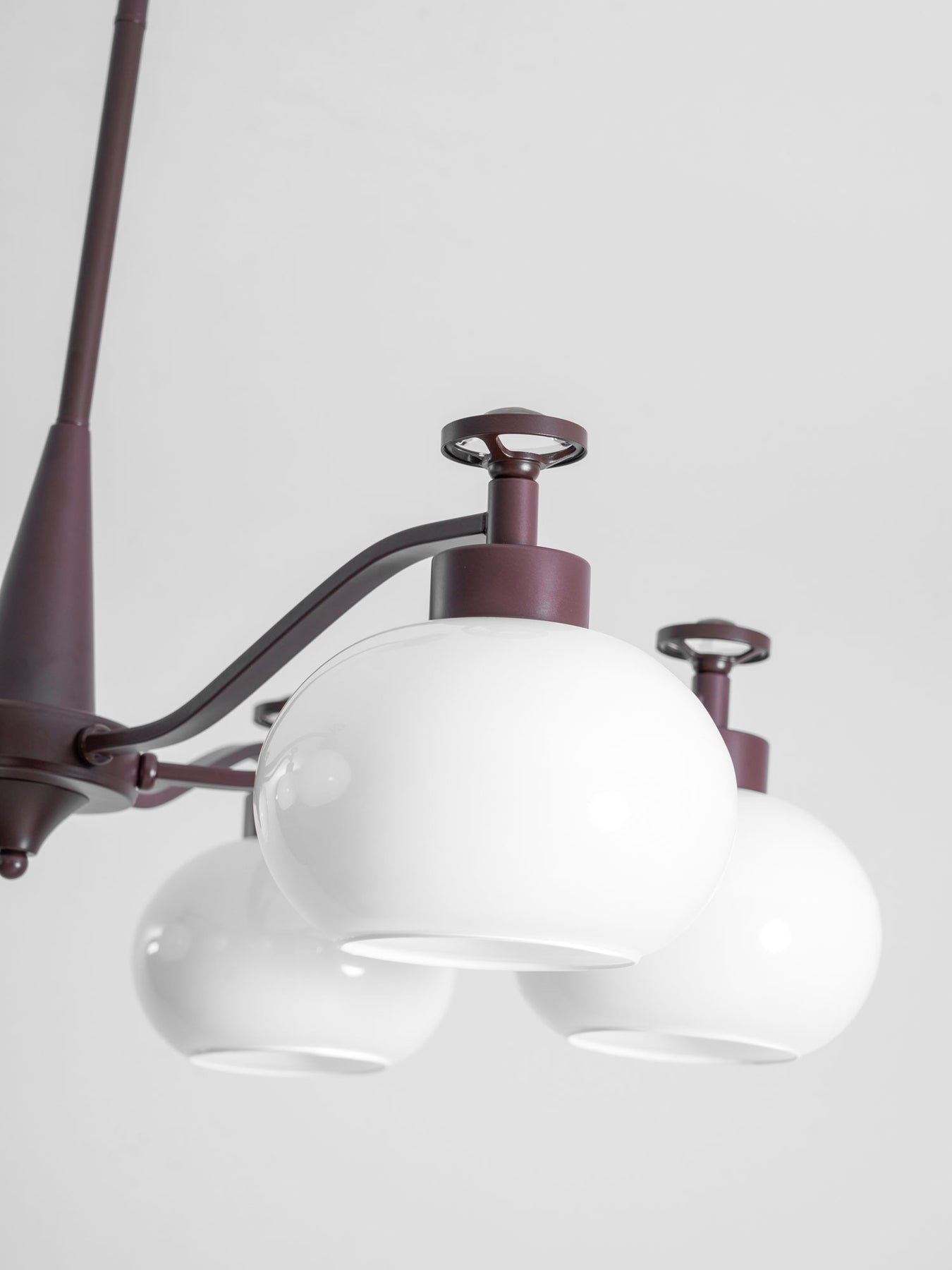 The Astrid Chandelier by Vakkerlight is a statement piece featuring symmetrical frosted glass globes on a minimalist frame. Its clean lines and soft glow create a refined, contemporary atmosphere in any space.