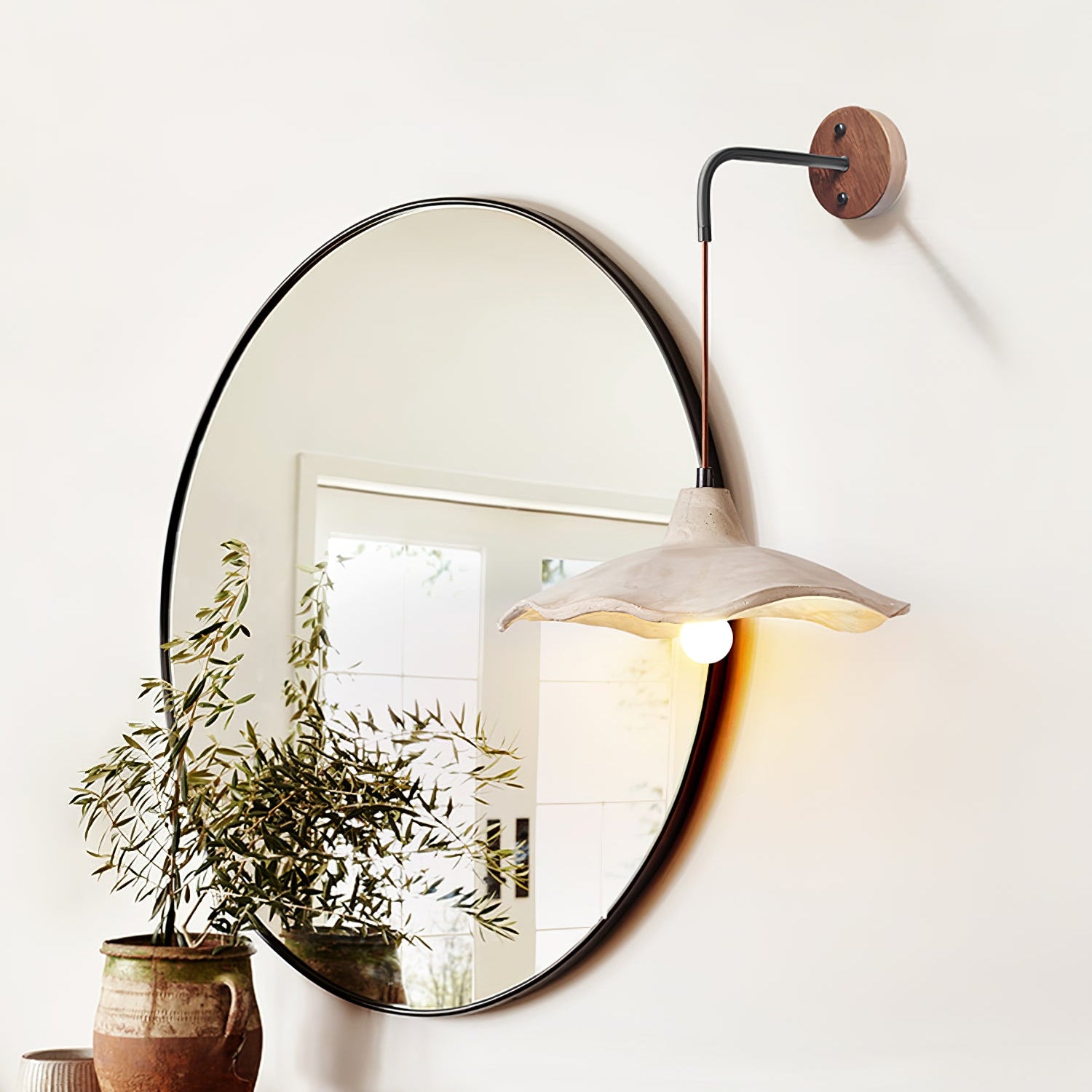 The Vakkerlight Mirella Sconce features a hand-formed microcement shade with soft, flowing edges inspired by natural waves. Suspended from a walnut-accented wall arm, it offers a warm, organic glow—perfect for modern rustic or wabi-sabi interiors.