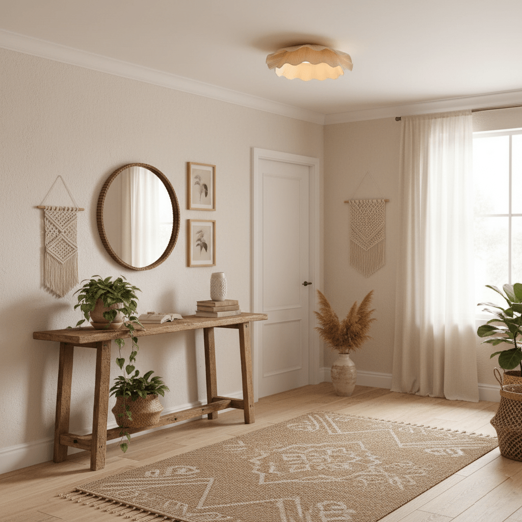 • Chandeliers: The entryway is the perfect spot for a statement chandelier. Use the length + width formula to determine the diameter, and ensure the fixture hangs at least 7 feet from the floor to allow clearance.