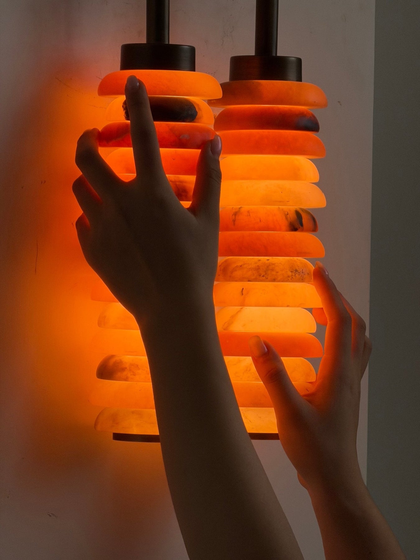 Alabaster is a natural stone, making each lamp very heavy. Do not move the lamp by the power cord, as this can damage the cord or internal LED wiring. Always carry and move the lamp by its body. During installation, pay special attention to this—pulling on the power cord may cause poor wiring connections over time.