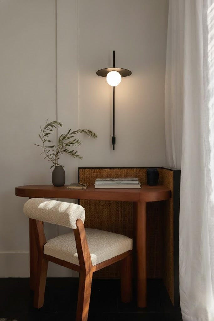 • Task Lighting: Bedside lamps or wall sconces should be proportionate to the size of the nightstands and the bed. The lamp height should be roughly at eye level when sitting in bed.