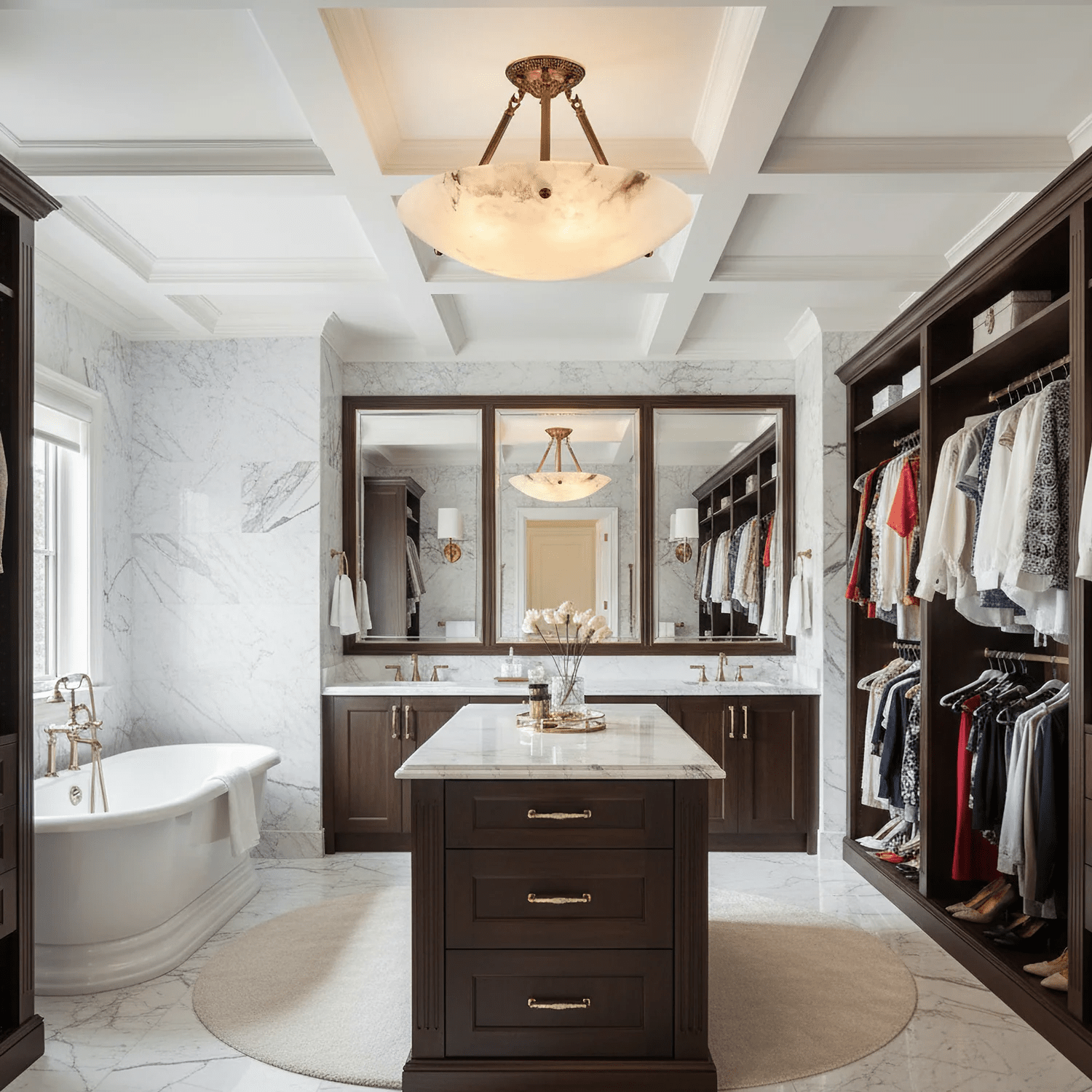 Ceiling Fixtures: Bedrooms benefit from soft, ambient lighting. Use the room dimension formula to ensure the ceiling fixture is properly scaled. Semi-flush or flush mounts work well for general lighting, while sconces or bedside lamps provide focused task lighting.