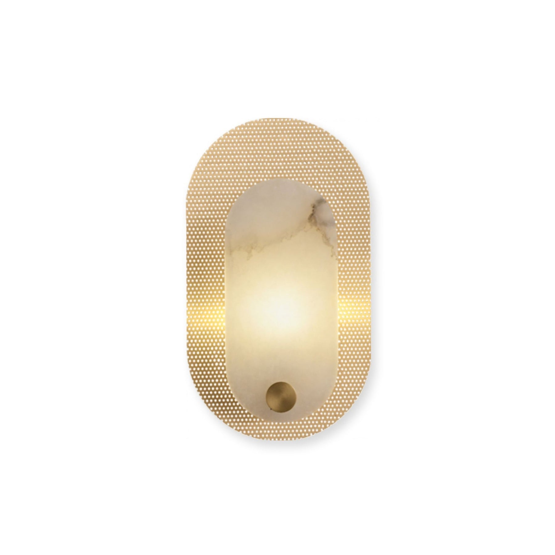 The Vakkerlight Perforated Oval Wall Sconce is a masterpiece of modern elegance. Combining a luxurious gold - toned, perforated metal frame with an inset panel that has the natural veining of stone, it exudes sophistication. The perforations allow light to create subtle patterns, while the oval shape and the integrated metallic detail at the bottom add a touch of geometric charm. Ideal for upscale living rooms, hallways, or bedrooms, this sconce from Vakkerlight brings both ambient lighting and a high - end aesthetic to any space.