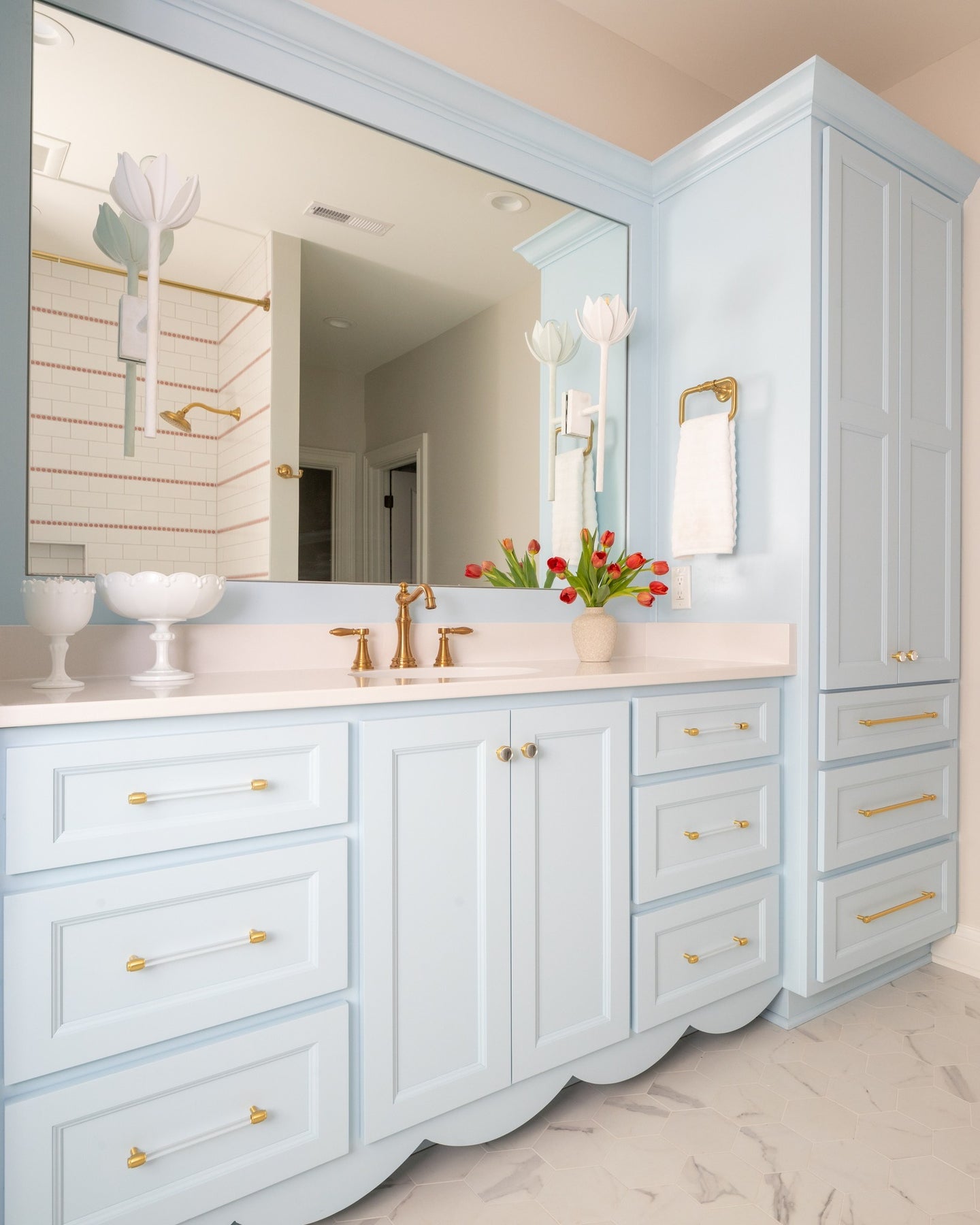 • Vanity Lighting: For task lighting, place sconces on either side of the vanity mirror to minimize shadows. These should be mounted 65-70 inches from the floor, and spaced appropriately for even lighting.