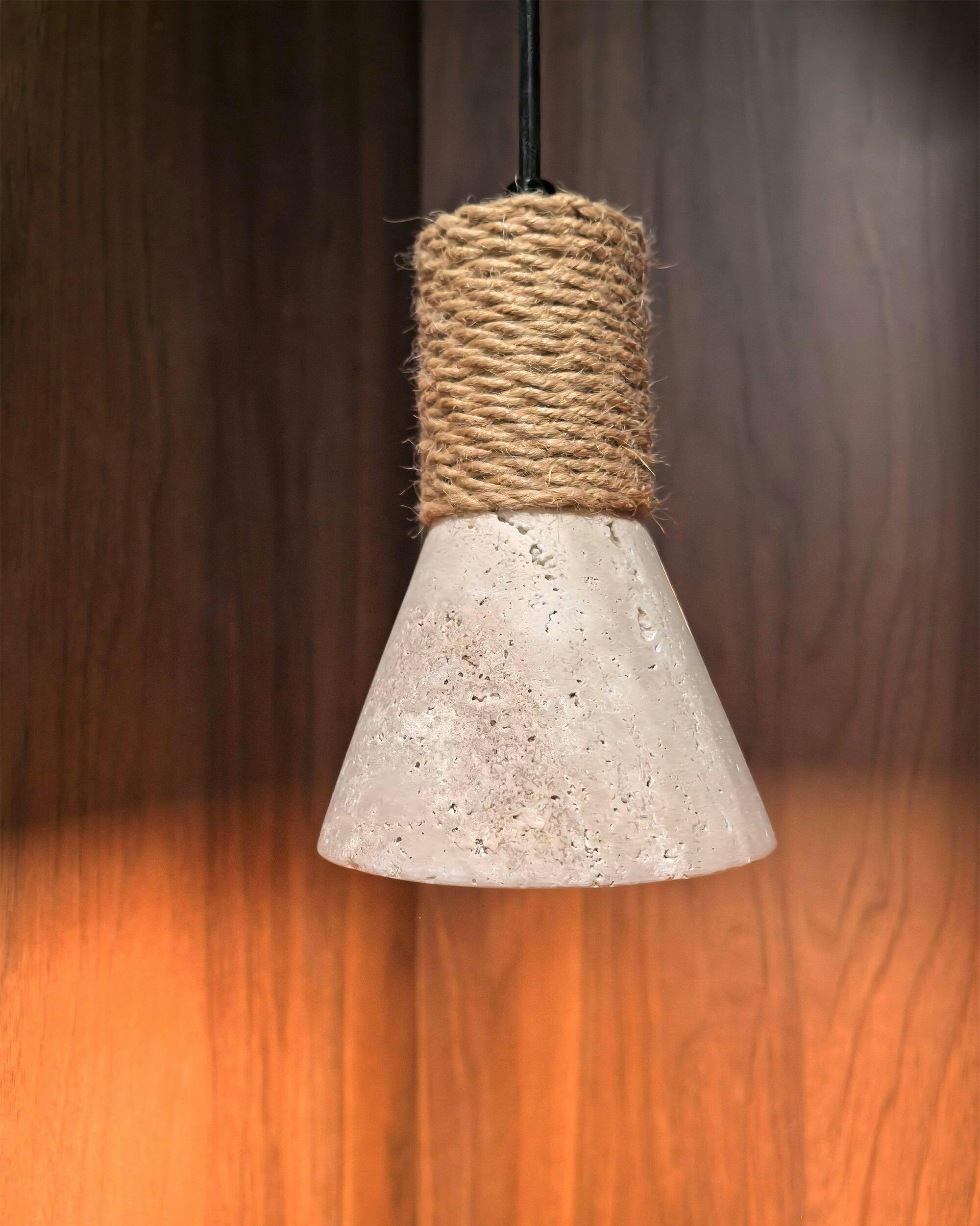 The Terra Rope Wall Lamp blends earthy materials into a warm, handcrafted statement piece. The conical travertine shade brings natural stone texture and soft, organic color variation, while the hand-wrapped jute rope adds a rustic, artisanal touch. Paired with a walnut wall mount and a sleek metal arm, the design feels both grounded and refined.