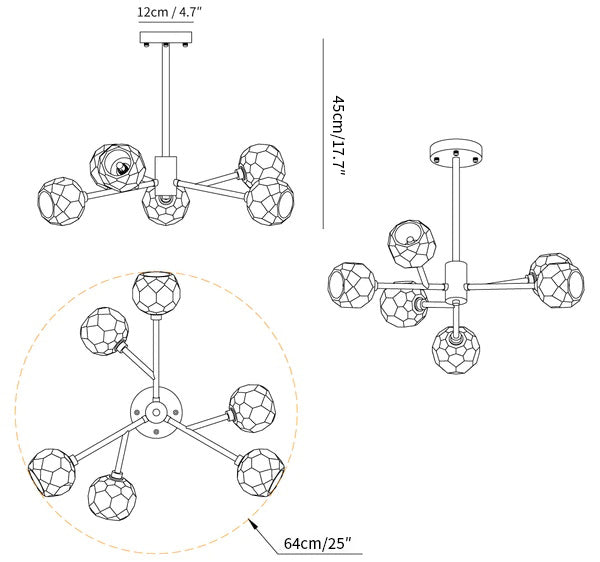 Dimensioni 6 teste: diametro 64 cm x H 45 cm / ∅ 25″ x H 17.7″