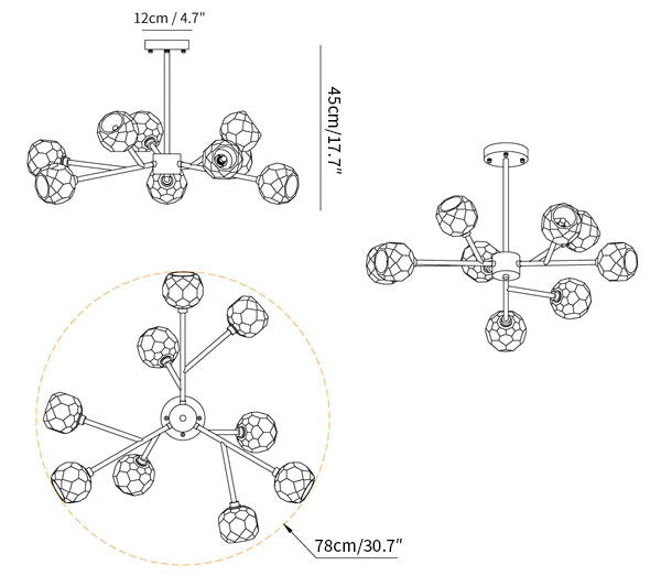 Dimensioni 9 teste: diametro 78 cm x altezza 45 cm / ∅ 30.7″ x H 17.7″