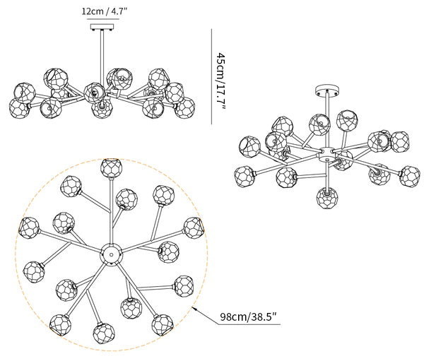 Le dimensioni e gli angoli precisi di ogni pezzo diffondono e riflettono la luce nella stanza creando un ambiente accogliente. Posiziona sopra un tavolo da pranzo per un look di lusso che fa una dichiarazione. Oppure posizionati al centro della scena in un soggiorno per creare un'atmosfera vintage fresca che ha un fascino infinito di designer.